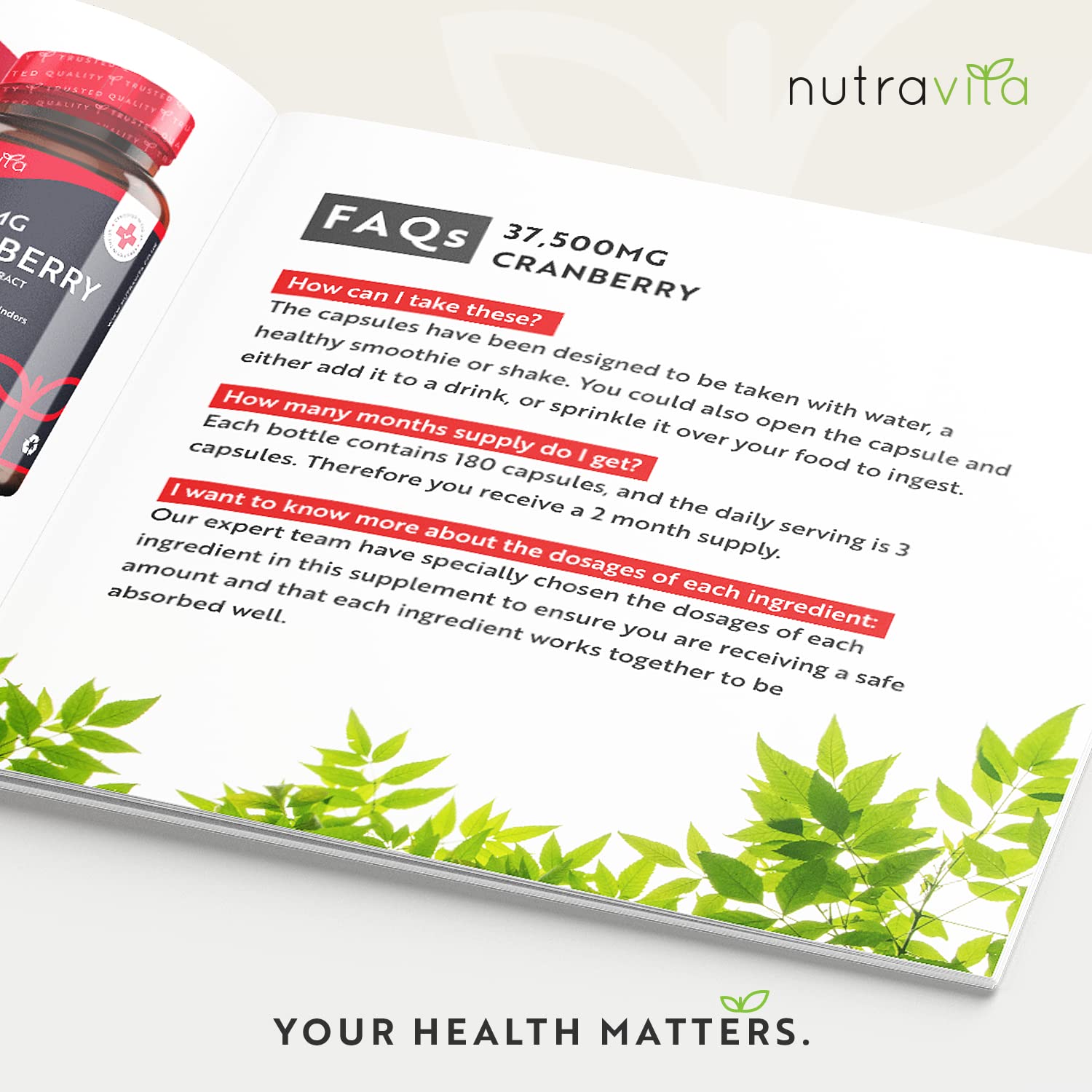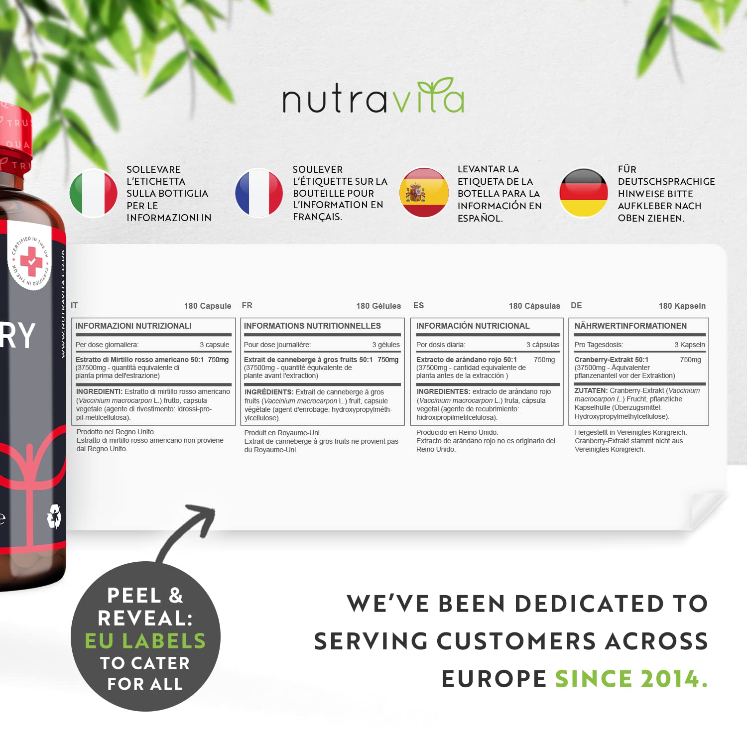 - ✔ WHY NUTRAVITA'S CRANBERRY EXTRACT? – Our high strength Cranberry Extract provides you with 180 vegan capsules for a 2 month supply at 3 capsules per day. Unlike cranberry tablets, our popular daily supplement contains only pure, powdered cranberries from Vaccinium Macrocarpon L., no anti-caking or bulking agents. Each of our capsules provide a potent 250mg of 50:1 Cranberry Extract per serving equivalent to 37,500mg of fresh cranberries.