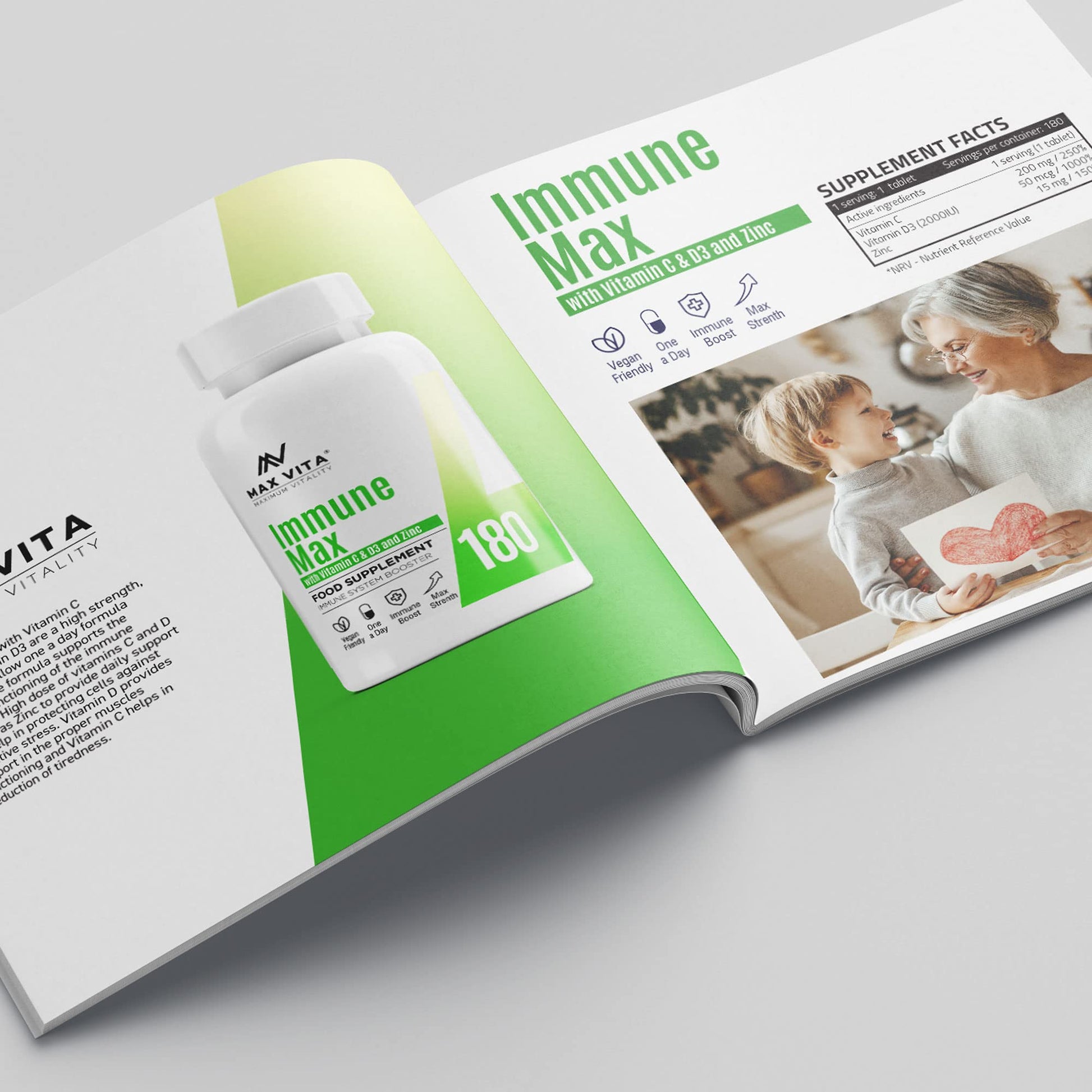 MAX VITA MAXIMUM VITALITY Vitamin C with Zinc 15mg & Vitamin D3 2000IU Multivitamin for Men & Women Immune Booster Strong Bones Teeth - 180 Vegan & Vegetarian Tablets Made in The UK