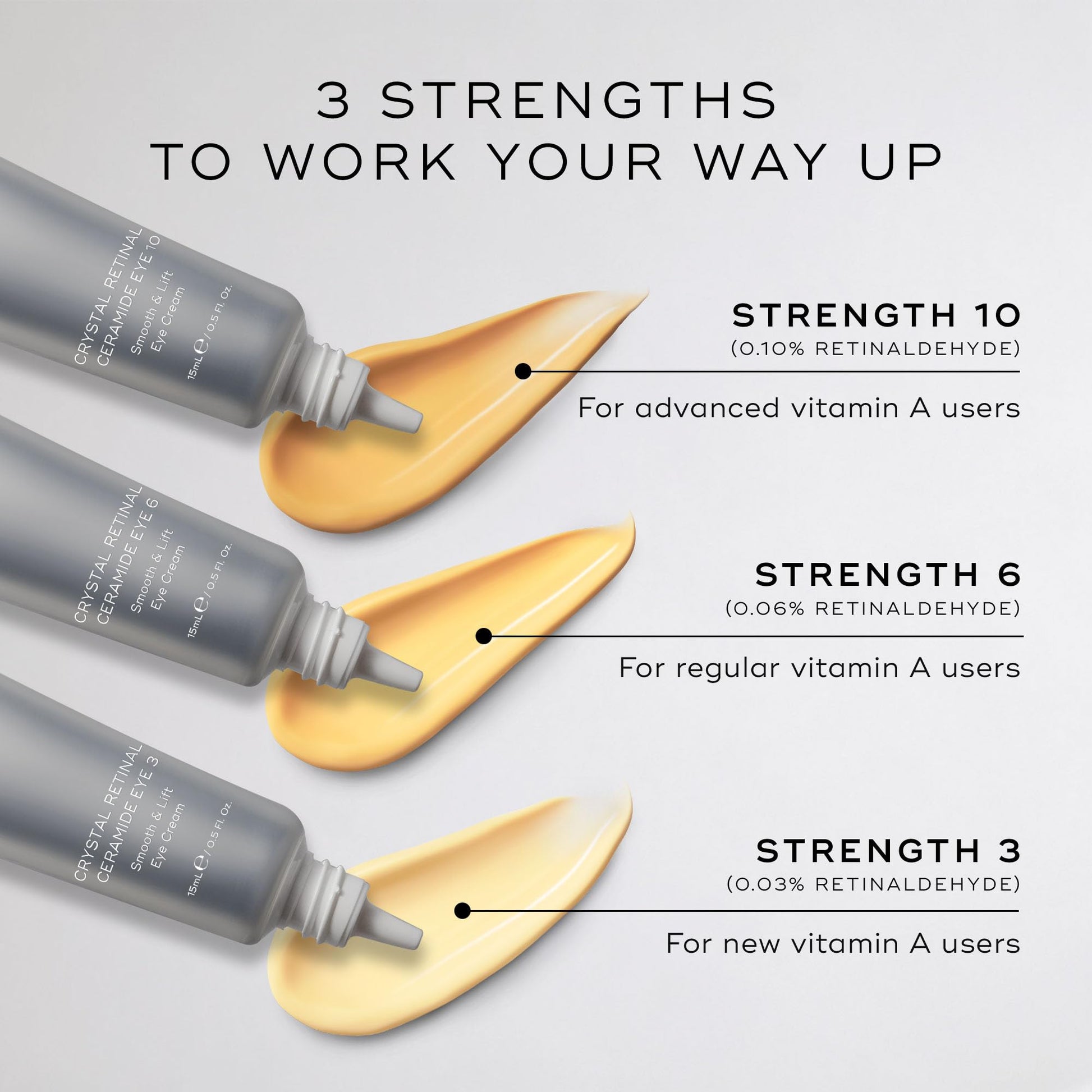 - PROGRESSIVE STRENGTHS - Choose from three progressive strengths to suit every level of retinal user; from beginner to expert. Expertly optimised to be suitable for use on the delicate eye area.