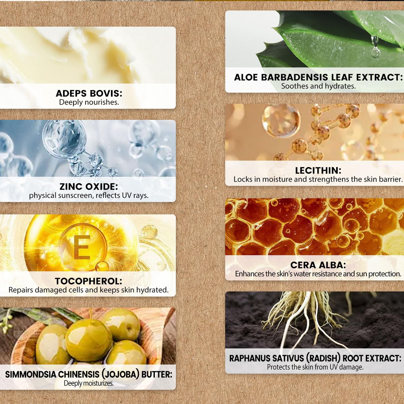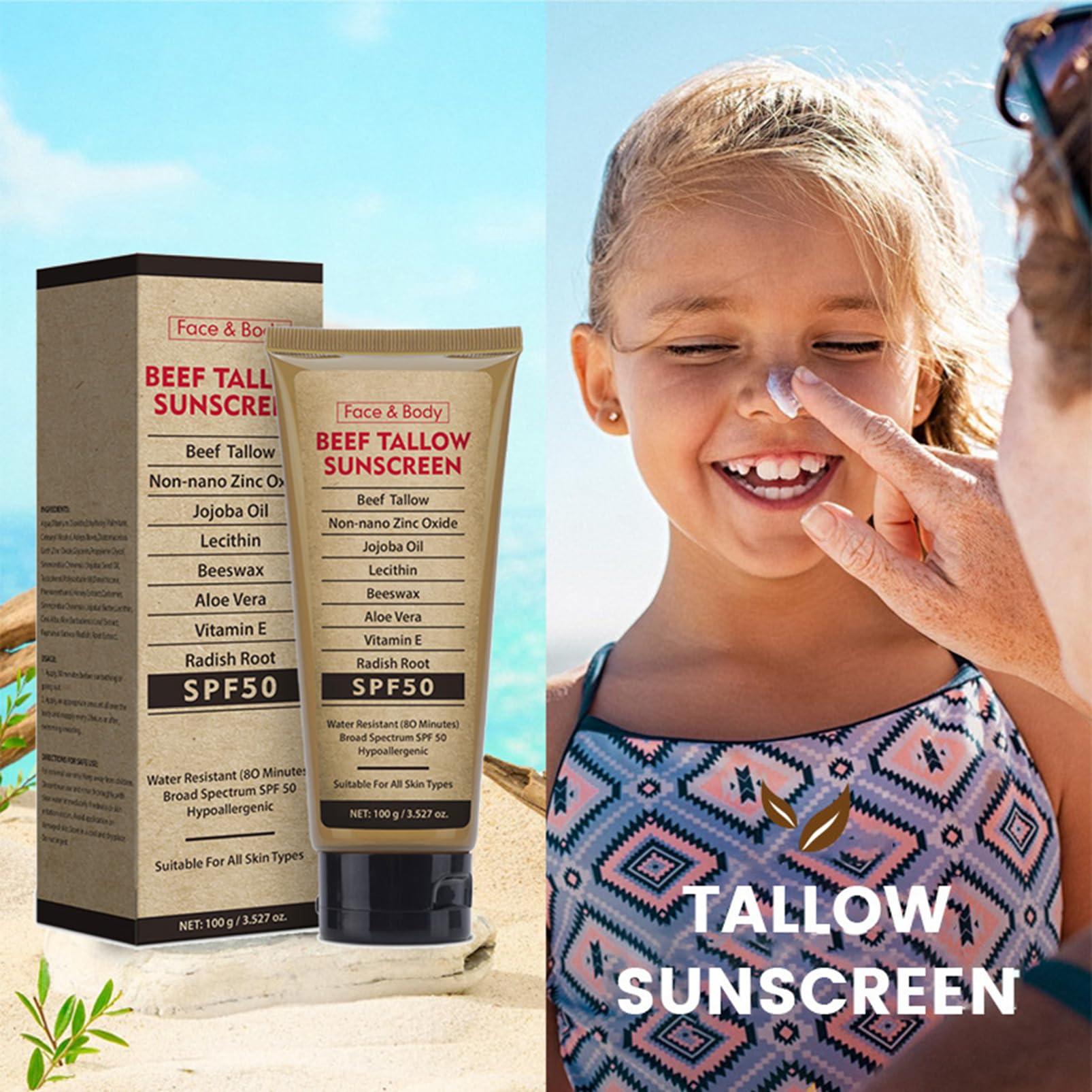 Beef Tallow Sunscreen SPF 50 Face - Non Nano Zinc Oxide Sunscreen Balm - Natural Tallow Sun Cream for Face & Body - SPF50 Sun Cream - Zinc Oxide & Beef Tallow Sunblock Cream with 10 Botanical Extracts Lightweight, Non GreasySunscreen Cream is a multifunctional product, which has both moisturizing and sunscreen functions. This formula combines nourishing and moisturizing plant extracts to lock in moisture, keep skin soft and smooth, and provide adequate sun protection