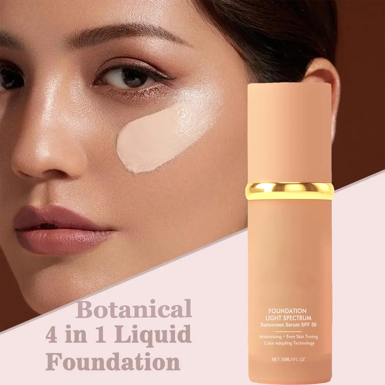 MEITREND Bio Foundation 4 in 1 Light Spectrum with SPF 50,Hydrating Medium Full Coverage Color Changing Foundation,4 in 1 Liquid Foundation Color Matching Foundation Longwearing & Waterproof Makeup