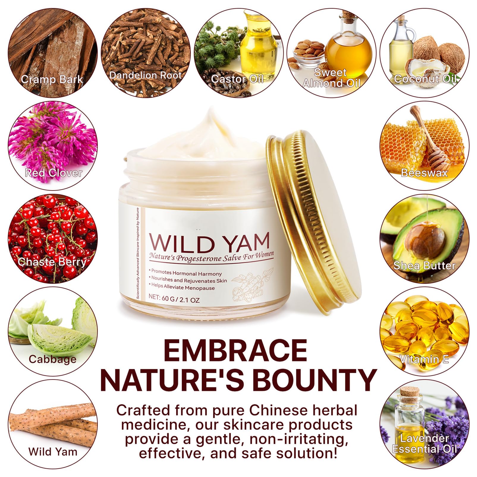 60G Natural Wild Yam Cream - Wild Yam Cream Natural Formula - Wild Yam Cream For Hormone Balance Women's Care: Wild Yam Skin Cream Helps Balance And Support Natural Feminine Functions. Natural Ingredients: Crafted With Pure Wild Yam And Natural Ingredients, Our Wild Yam Cream Is Organic Convenient Daily Use: Apply Daily To Selected Areas Like The Chest Or Abdomen.For Menopausal Relief, Gently Massage Onto Wrists During Hot Flashes Or Night Sweats For Fast, Soothing Comfort How To Use: Wild Yam Cream Provides Targeted Relief For Menopausal Symptoms.Apply To Chest, Neck, Abdomen, Inner Arms, Or Thighs For Optimal AbsorptionMore Info