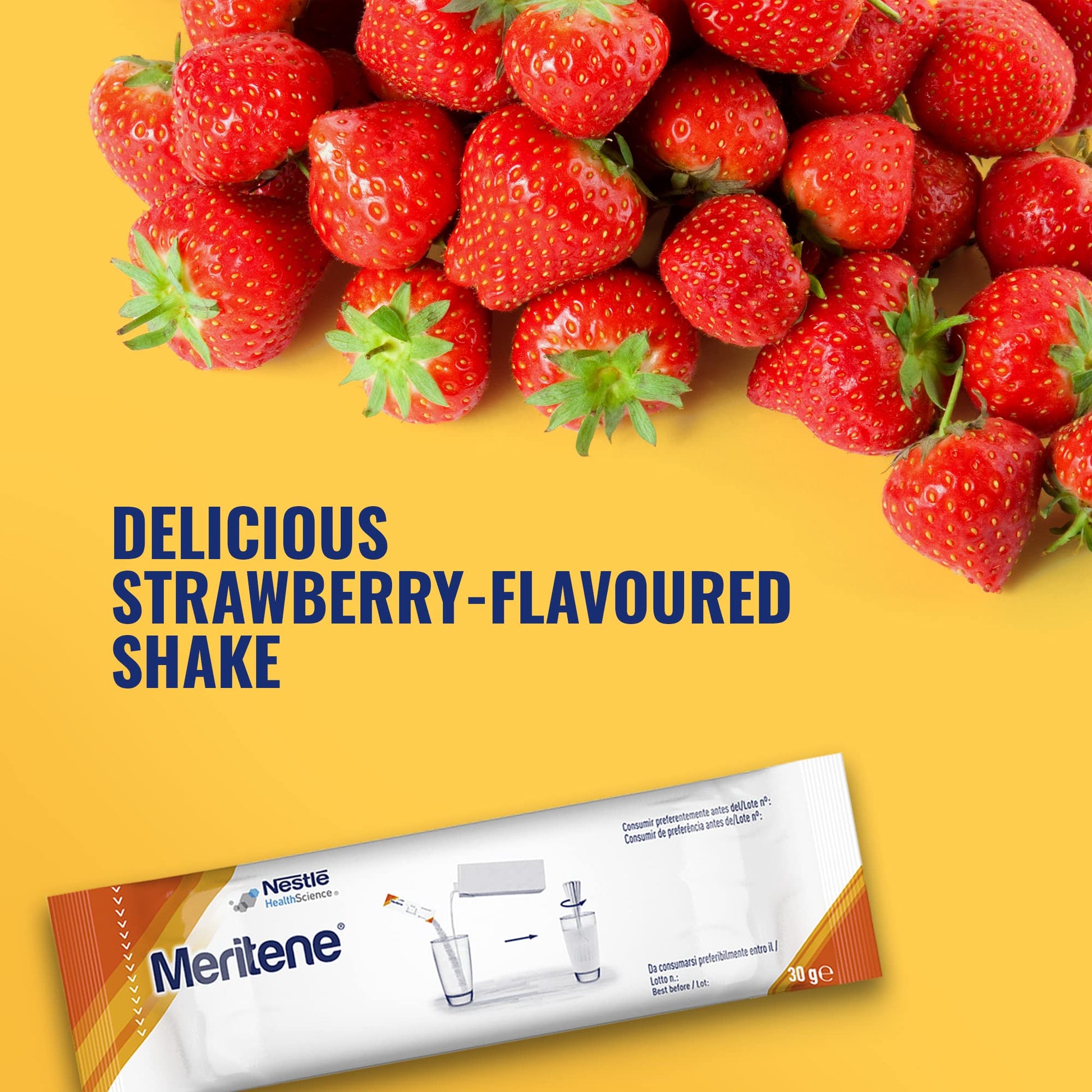 Meritene Energis Strawberry Shake | 30g Shake Powder Sachets, Pack of 15 | Nutritional Shake Mix with Proteins and Vitamins