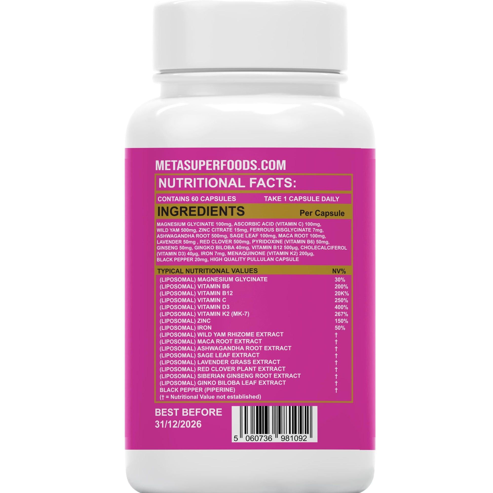 MetaSuperfoods Liposomal Perimenopause Womens 60 Multivitamin Capsules | Vegetarian | High Strength Women’s Vitamins | Menopause Supplement 1 A Day Non GMO