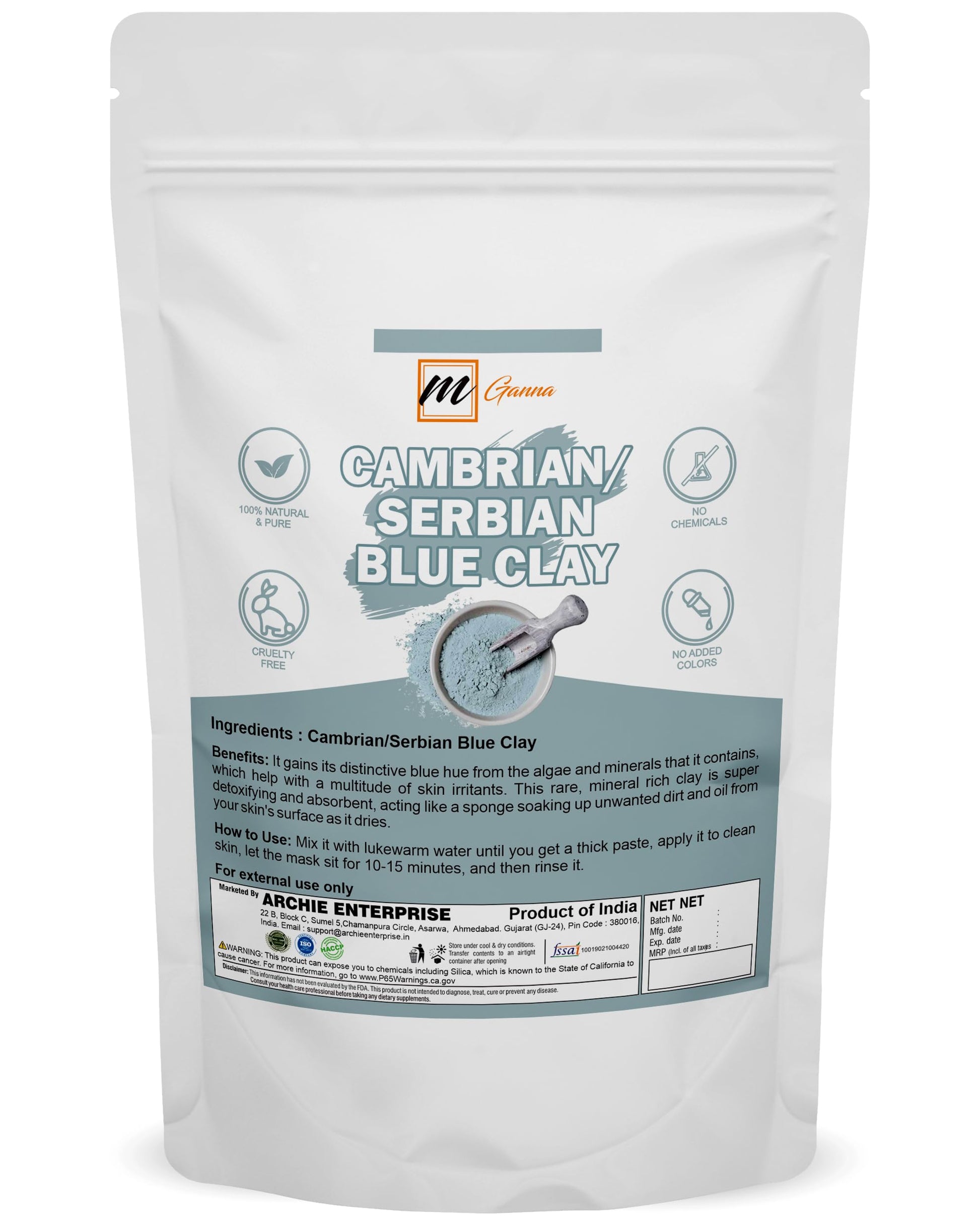 mGanna 100% Natural Cambrian/Serbian Blue Clay for Facial Masks, Creams, Body Wraps, Soft Peels and Scrubs, and Soap Making 1 LBS / 454 GMS