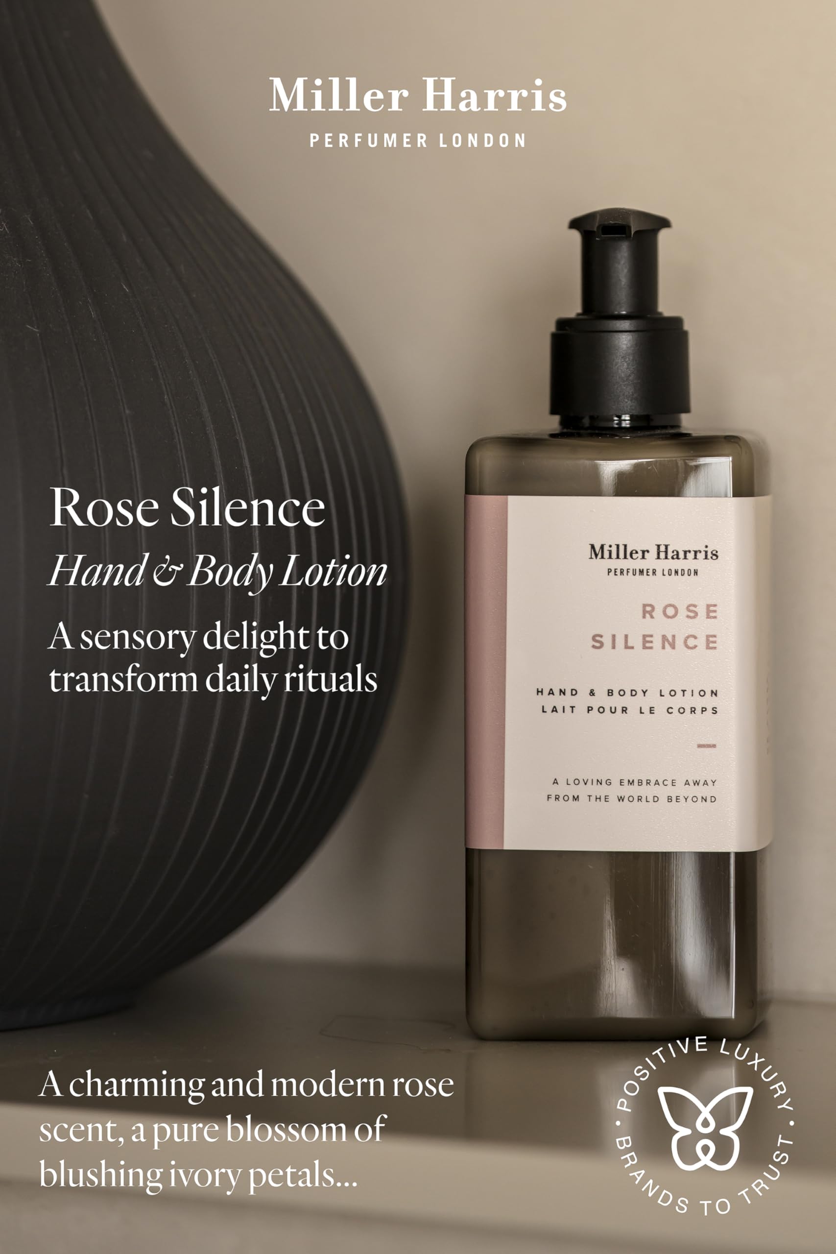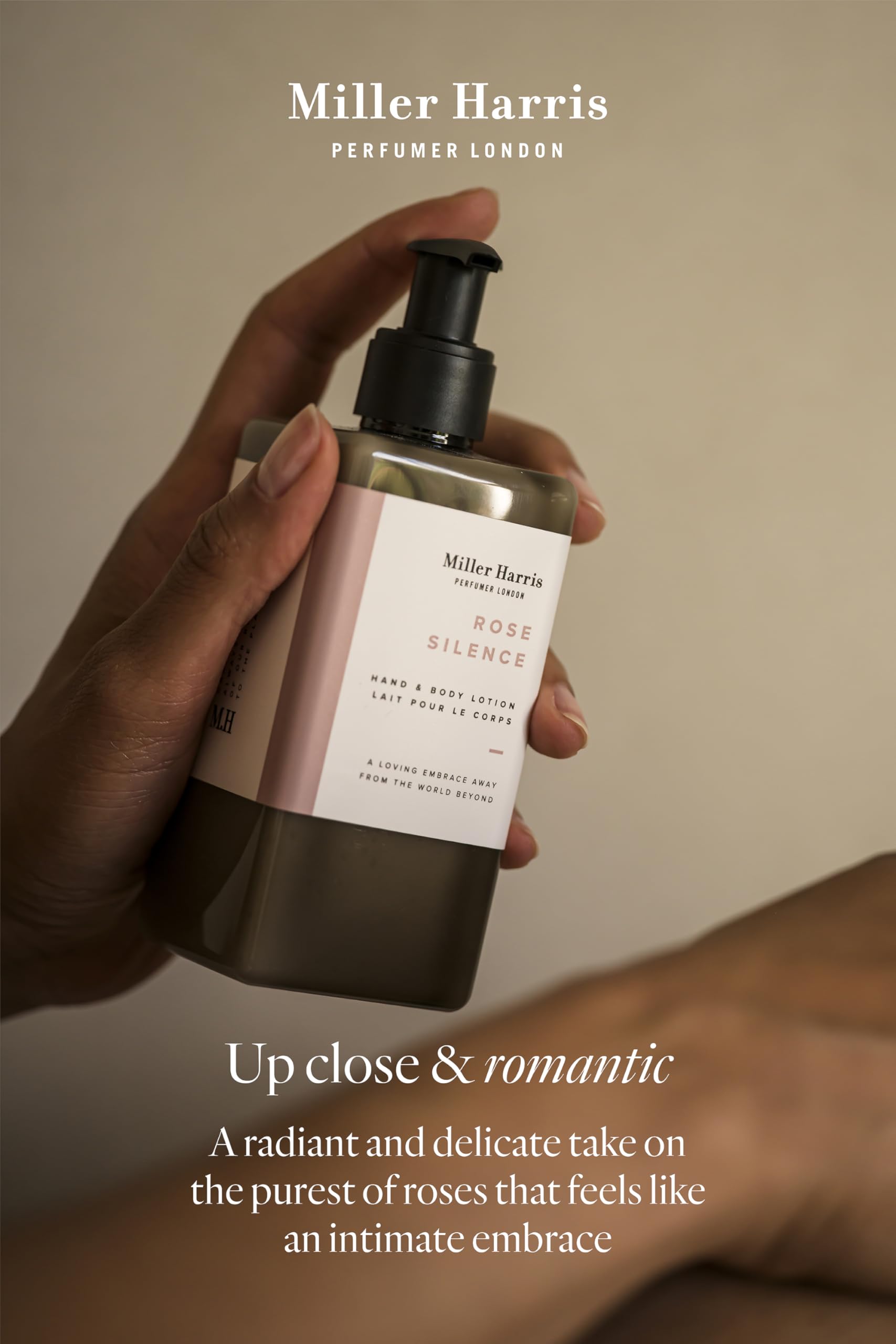 Miller Harris Rose Silence Hand and Body Lotion 300ml – Shea Butter, Argan Oil, Glycerin, Aloe Vera & Vitamin B5 | Soft & Delicate Rose Scent for Gentle Cleansing