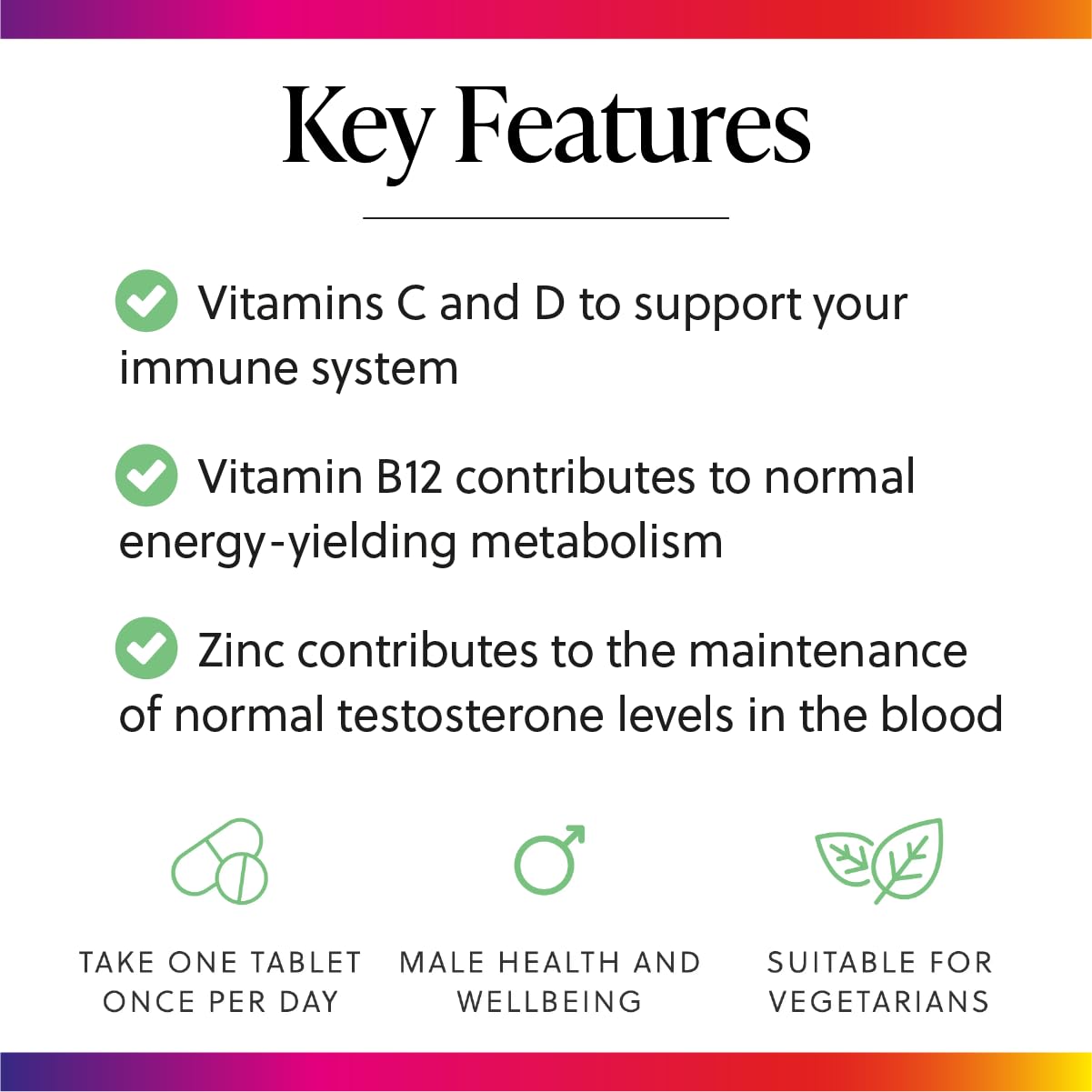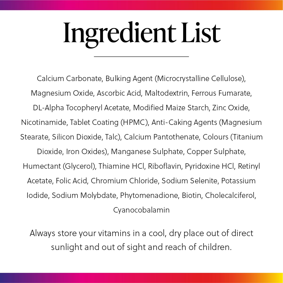 - HOW TO USE: Take one tablet daily with a meal to ensure optimal absorption of nutrients. Incorporating this multivitamin into your daily routine helps provide essential vitamins and minerals to support overall health, energy levels, and well-being. Food supplements should not be used as a substitute for a balanced and varied diet and a healthy lifestyle. Not suitable for children under the age of 12.