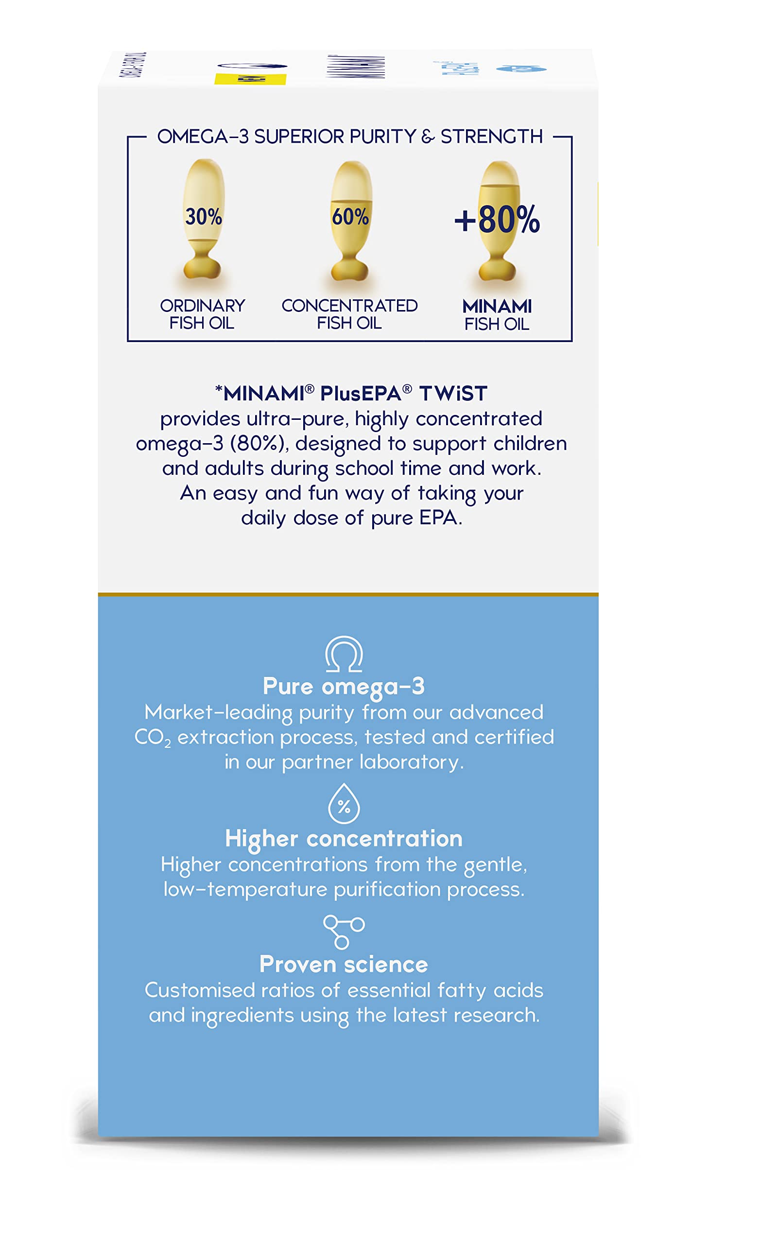 MINAMI PlusEPA contains our highest level of EPA, the omega-3 fatty acid that is preferrably used during the saddest times of the year, when the leaves are falling or during the dark winter months. Did you know that up to 25% of school children and about one in three women over 40 have too low a level op EPA in their bodies? They are in need for pure EPA dosages.More Info