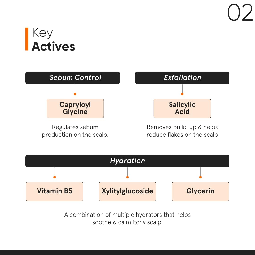 Our specialised Anti-Dandruff Serum provides targeted relief from dandruff and gives a nourished, healthy scalp. High active concentration in a non-greasy formula containing Climbazole, Piroctone Olamine, Elestab & Oligopeptide-29, combats dandruff-causing fungus. It also contains Capryloyl Glycine to control excess sebum and Salicylic Acid for gentle exfoliation.More Info