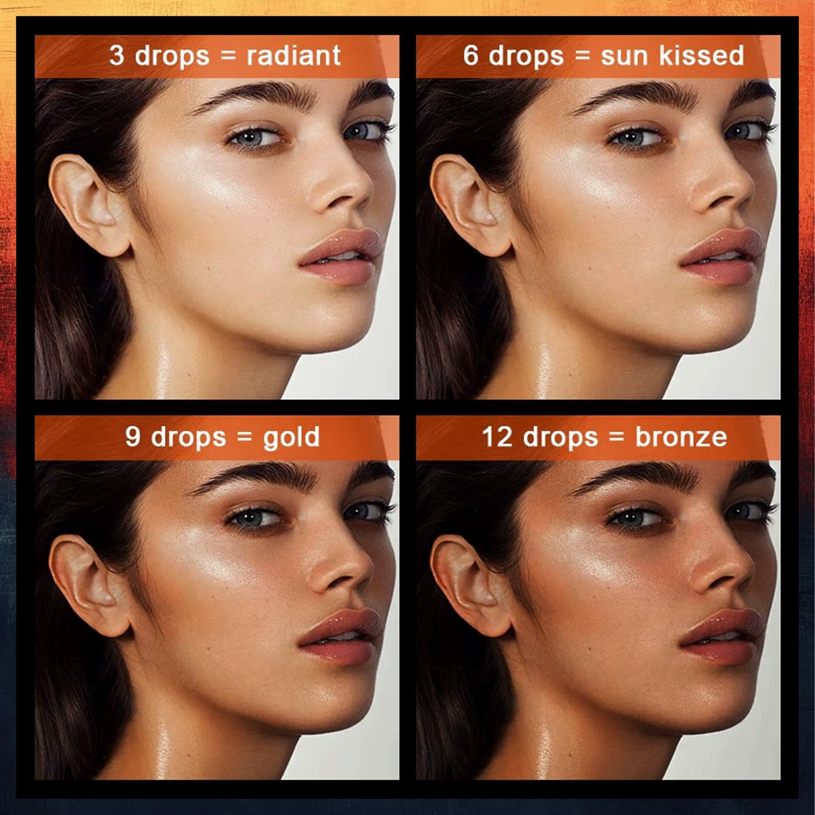 Ideal for both women and men, this liquid tanning drop enhances your natural skin tone with a true, luminous medium bronze color. 1. Moisturizing & Firming Effect: This product contains highly effective ingredients that promote moisture retention and elasticity of the skin, leaving the skin feeling silky smooth and delicate to the touch. 2. Demonstration of significant results: After 5 to 7 days of continuous daily application, the majority of participants observed a gradual change in the depth of the skin tone, depending on the individual skin type and the amount of use. 3. Wide applicability: This product is carefully formulated to promote the natural production of melanin and give skin a healthy glow. In addition, it is formulated with a gentle blend of skincare extracts, making it suitable for all skin types.More Info