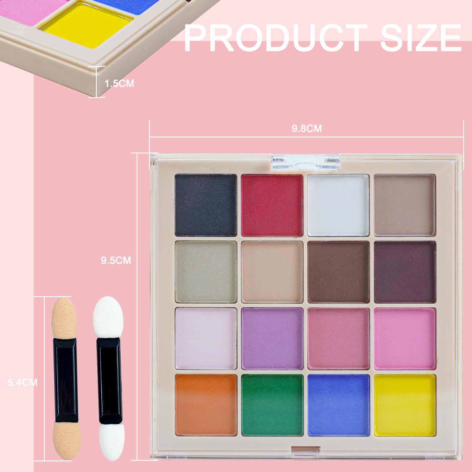MKNZOME 16 Colours Nail Pigment Powder, Chrome Nail Powder【2024 Upgrade】Yellow Pink White Nail Art Palette for Nail Design, Nail Art Body and Crafts Salon Home Use