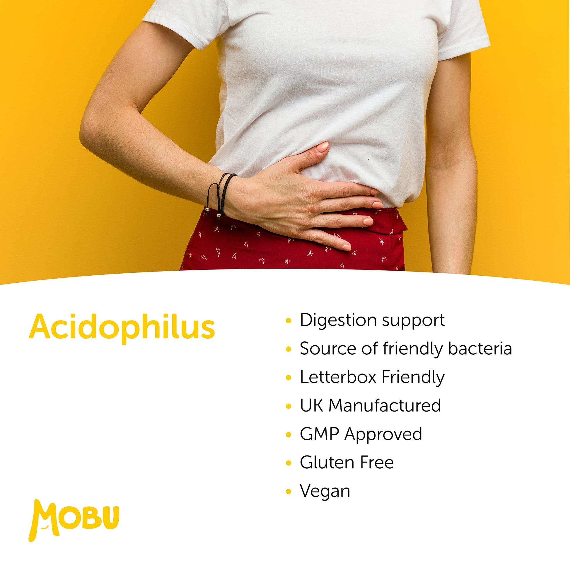 MOBU - Acidophilus Lactobacillus 50mg Probiotic - 500 Million CFU - Supports Healthy Gut Microbiome and Digestion System - Reduce Bloating - UK Made - GMP Approved - 120 Tablets