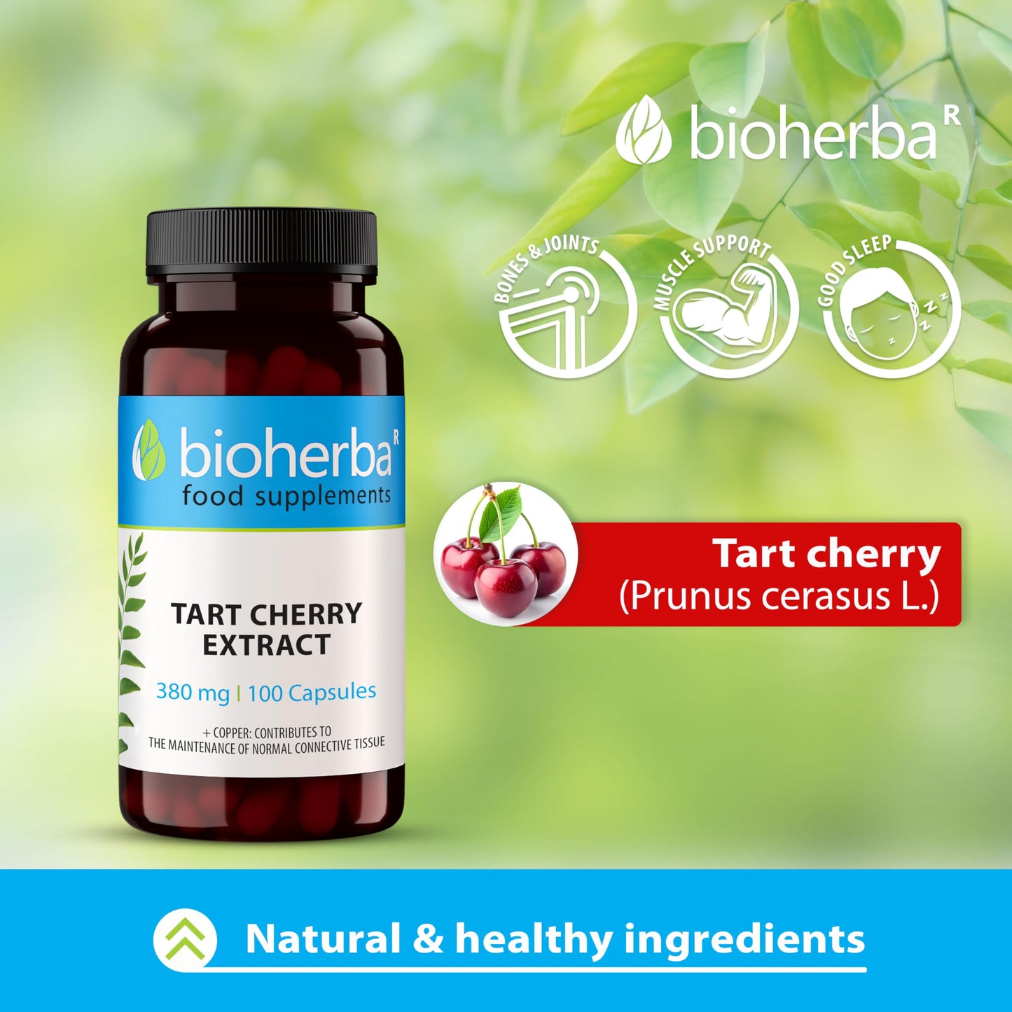 Montmorency Tart Cherry Capsules 380mg – 100 Count Natural Tart Cherry Extract Supplement for Joint Support Muscle Recovery and Sleep Aid by BIOHERBA