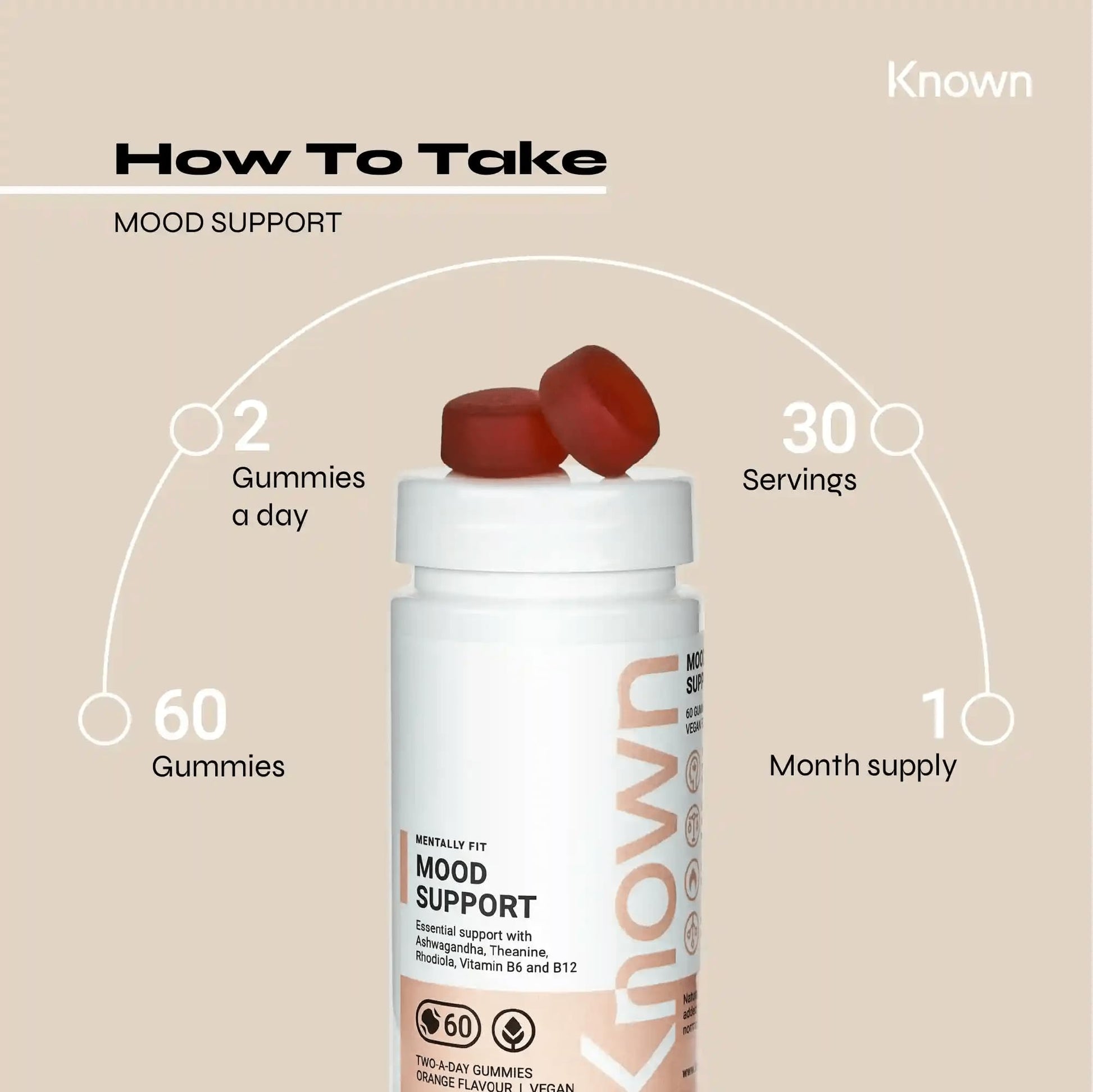 Mood Support Gummies by Known | Ashwagandha, Theanine & Rhodiola | 60 Two-a-Day Gummies (Two Month’s Supply) | Anxiety, Stress & Mental Fatigue Relief