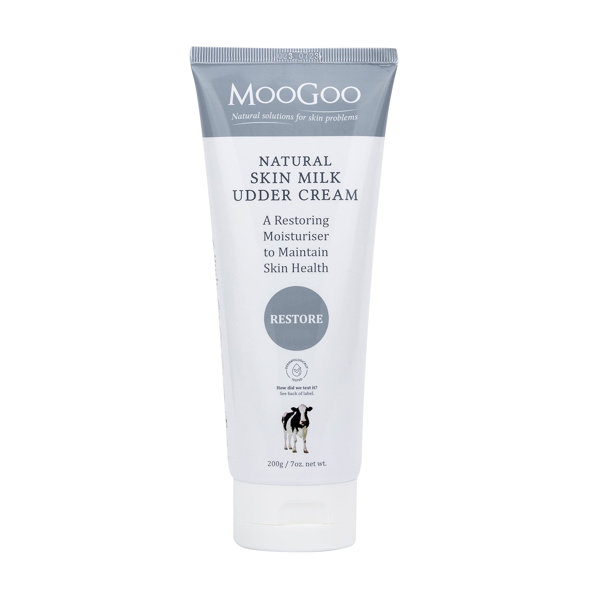 MooGoo: Natural Skin Milk Udder Cream Moisturizer Cream (200g)If you want your skincare to be healthy and perfectly natural, it has to start with MooGoo. We've cut out unnecessary synthetic ingredients and harsh chemicals to make a moisturizer that puts your skin's health above instant artificial smoothness. We use high-quality natural edible ingredients to make a lightweight moisturizing cream that revitalizes your face and body with natural vitamins and milk proteins. MooGoo is perfect for all skin types (dry, oily, combination, sensitive, and more) and all ages (baby to adult) because we don't use synthetic ingredients that most skin care does.