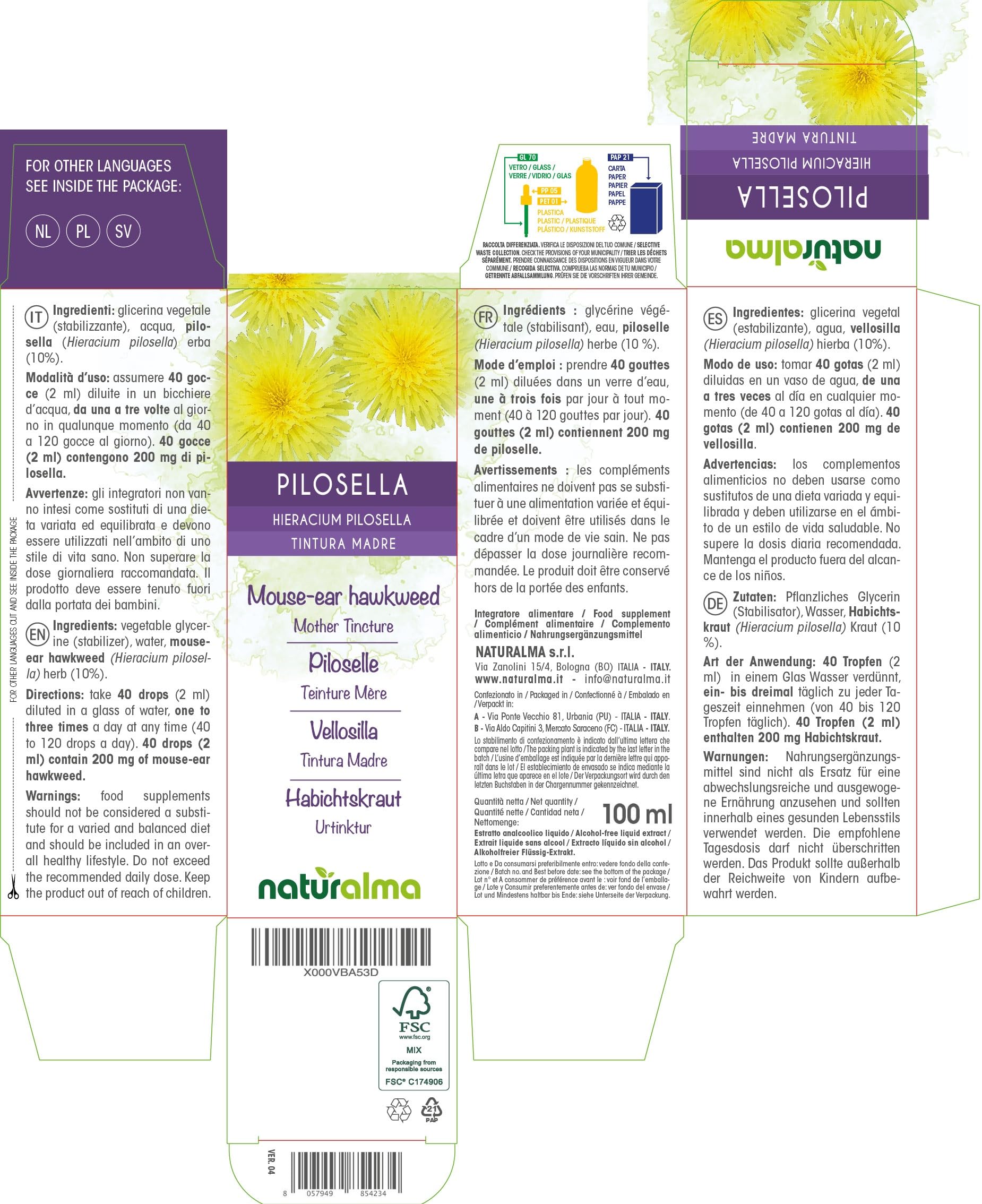 Mother tincture drops consisting of a Mouse-ear hawkweed (Hieracium pilosella) herb concentrated (1:10), highly pure, 100% natural extract. All NATURALMA mother tinctures are made using an exclusive extraction method, which allows to obtain the maximum concentration of active ingredients. They are 100% alcohol-free and totally natural. Pleasant-tasting, without added sugar. Supplement produced and packaged in Italy and notified to the Italian Ministry of Health. Glycerine is a 100% natural, plant-based and low calorie sweetener. Naturalma mother tinctures are alcohol-free and also suitable for animals (dogs and cats). These products are food supplements for human use, before using in animals we always recommend hearing the opinion of your veterinarian. Storage: the product can be stored at room temperature until the expiry date indicated on the package. Glyceric macerate or pure fluid extract of Mouse-ear hawkweed (Hieracium pilosella) herb in drops.More Info