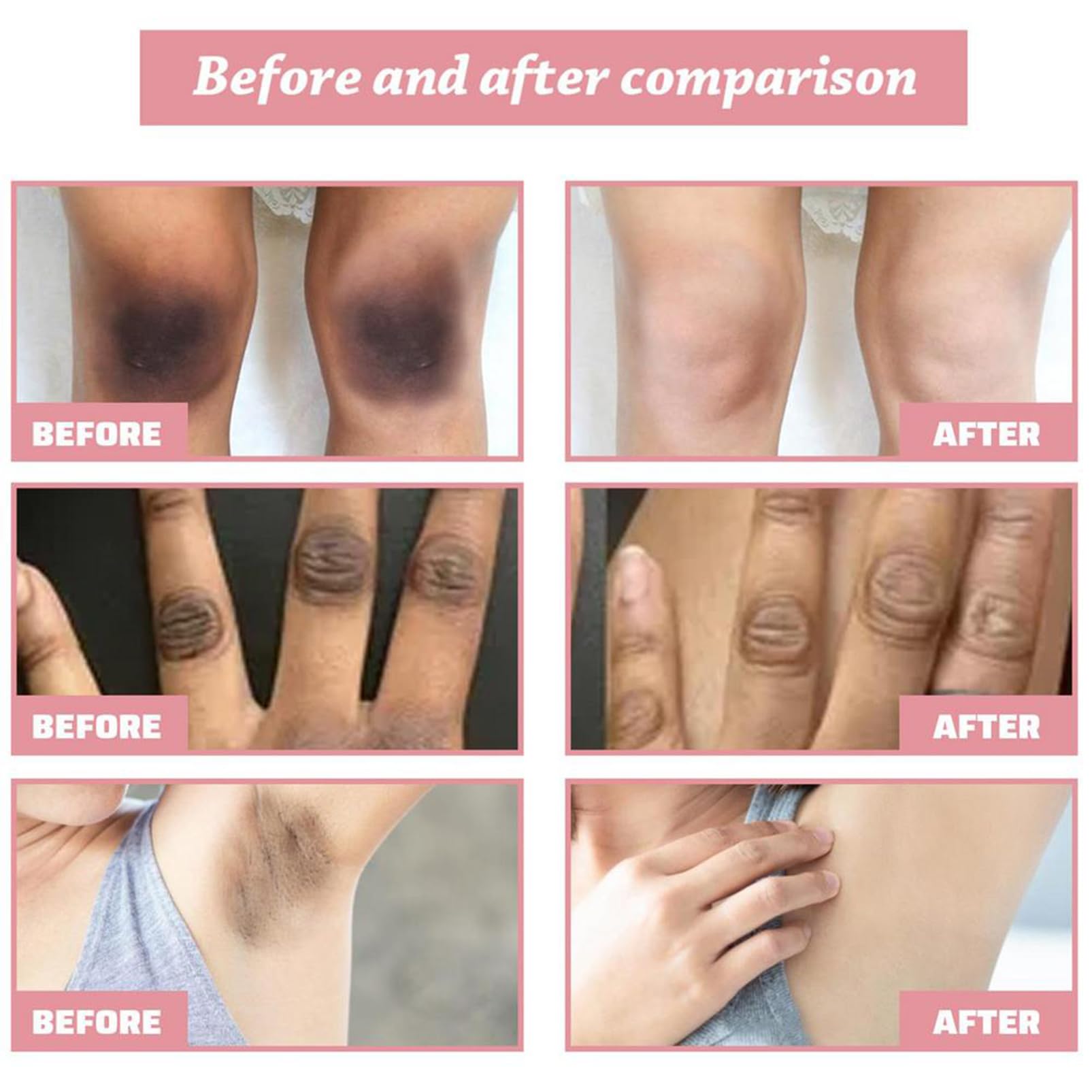 1. Provide instant whitening effect on discolored spots, including the elbows, knees, back, necklines, leg and bikini areas, face, underarms, etc.