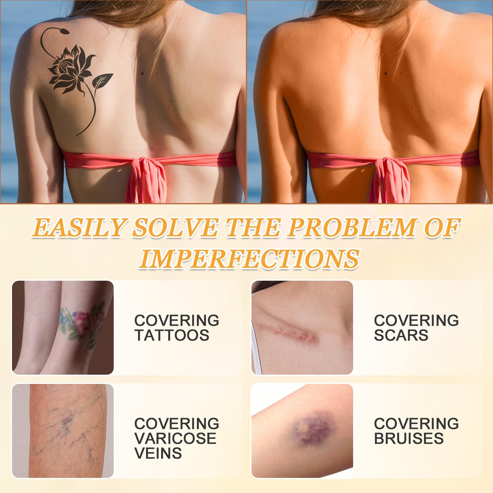 Strong Concealer: The leg foundation waterproof effectively evens out skin tone. It covers blemishes well and helps you get smooth and flawless legs.