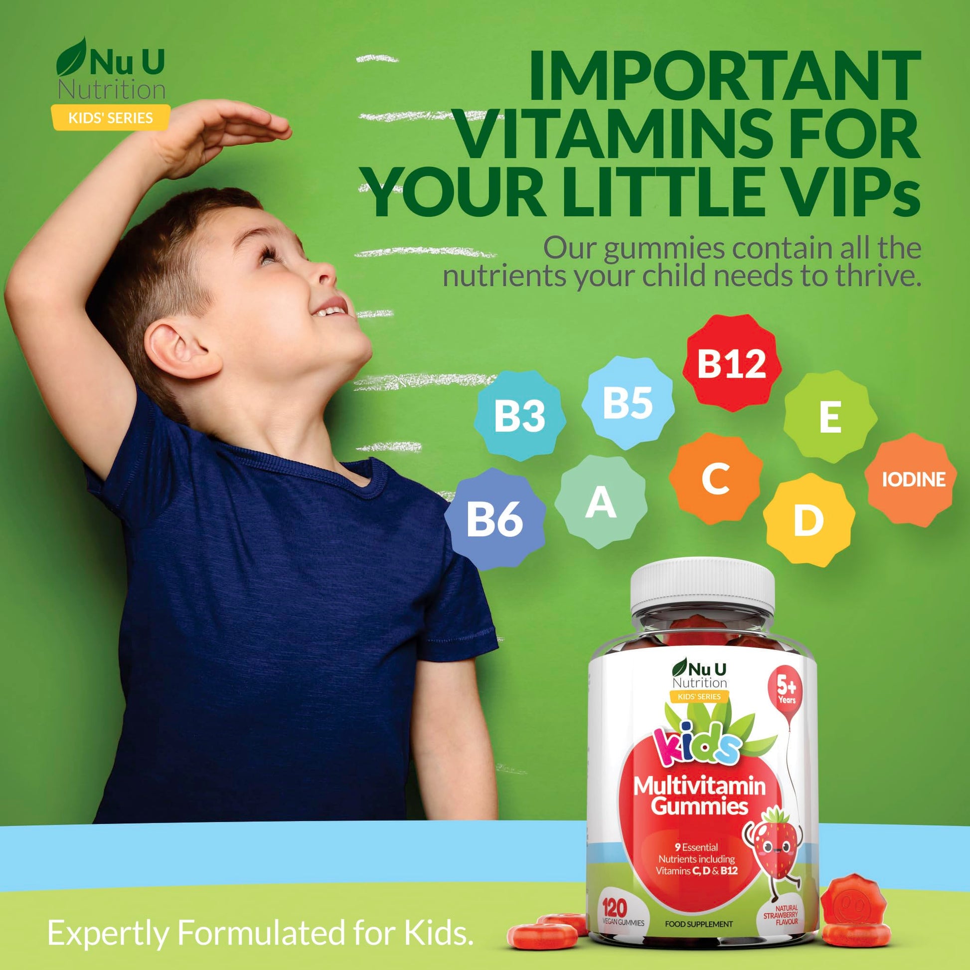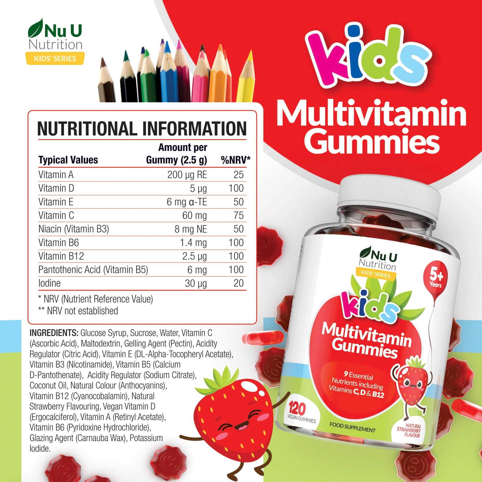 - ✔ 9 ESSENTIAL VITAMINS PER GUMMY - Our chewable gummies contain 9 essential vitamins that tick all the boxes for your little one’s everyday needs. We have included Vitamin A, Vitamin D, Vitamin E, Vitamin C, Vitamin B3, Vitamin B6, Vitamin B12, Vitamin B5 and Iodine into a tasty strawberry gummy that they’ll enjoy taking every day. Our gummies are also a great alternative to traditional tablets and capsules than some children can find hard to take.