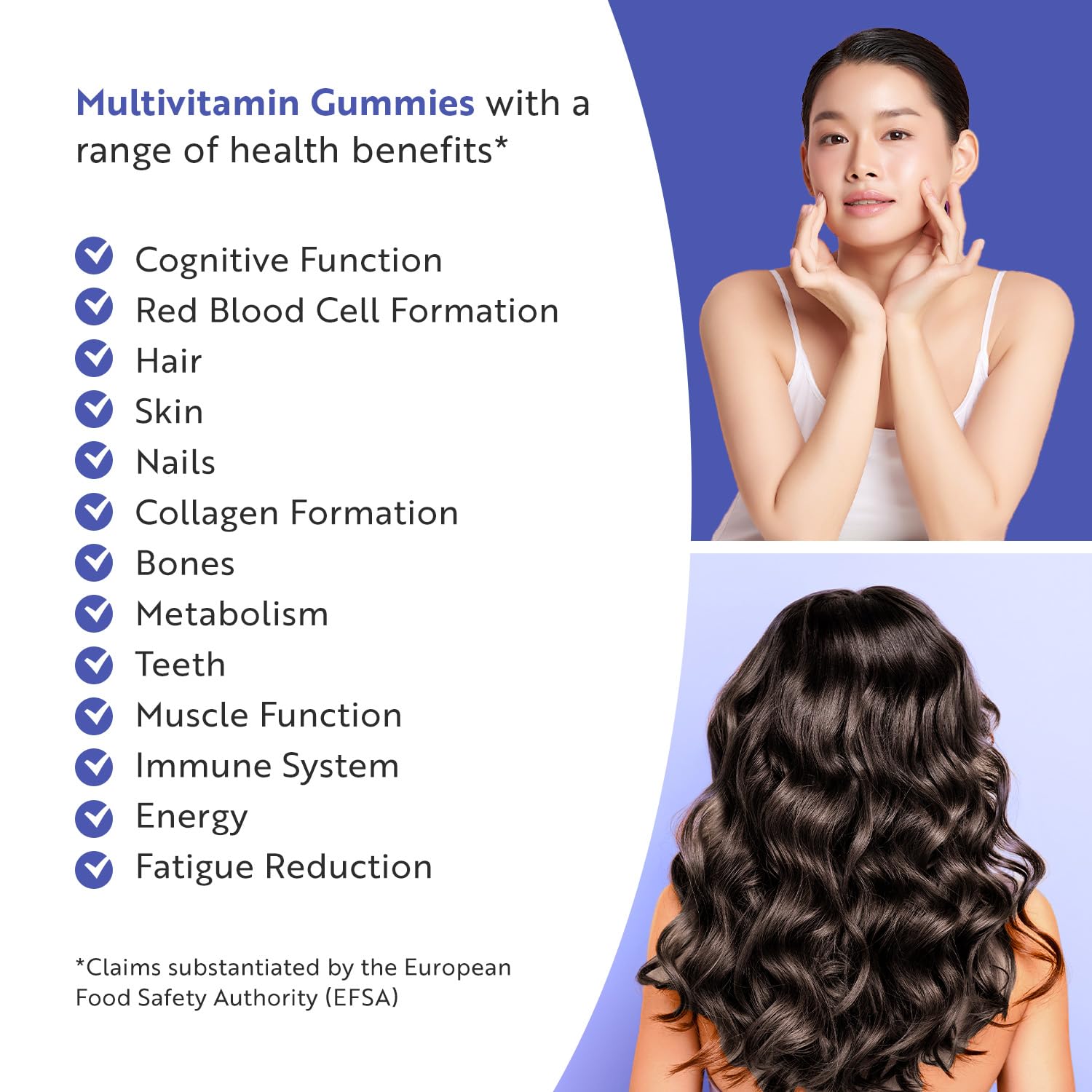 Multivitamin Gummies for Women and Men - with Vitamin C A D B12 Biotin & Zinc - Berry Flavour Chewable Adult Multi Vitamins - Our Multivitamin gummies for Women and Men comes with 14 Active Vitamins & Minerals that have been carefully selected to support you on a daily basis. Our supplement comes with a 2 month supply of 60 gummies, with each of the chewable vitamin gummies containing the benefits of the 14 essential active vitamins & minerals. They are a great alternative to multivitamin tablets.More Info