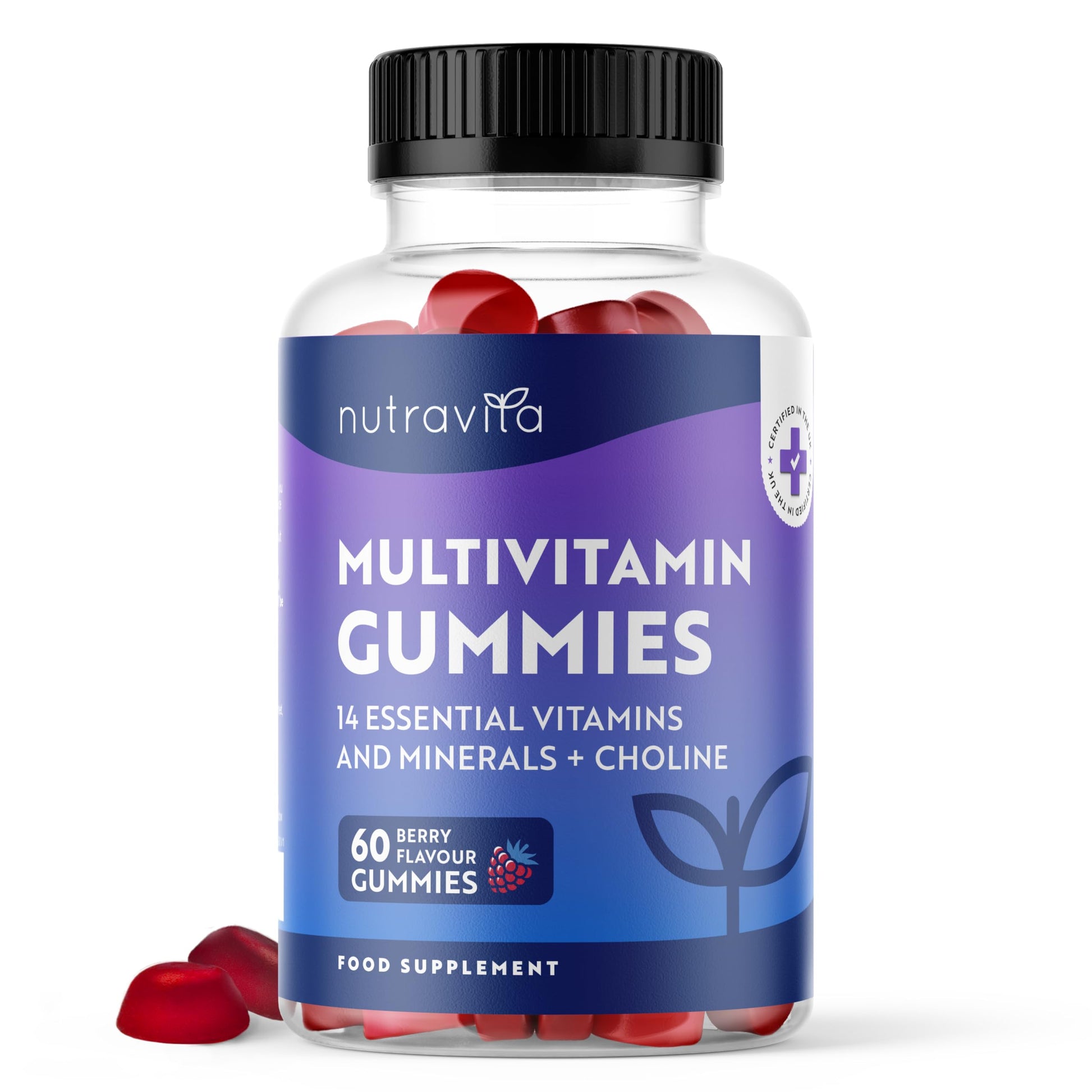 Multivitamin Gummies for Women & Men - 60 Vegan Gummies (2 Month Supply) - 14 Essential Vitamins & Minerals with Vitamin C A D B12 Biotin Zinc - Berry Flavour Chewable Adult Multi Vitamins - Nutravita