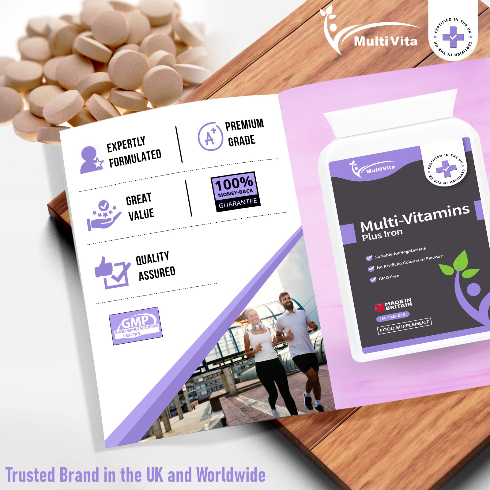 Multivitamins with Iron 180 One A Day Tablets - 13 Essential Vitamins & Minerals for Men and Women - Vitamins A, C, D, E, B1, B2, B3, B5, B6, B9, B12 & More - 6 Months Supply, UK Made to GMP Standards