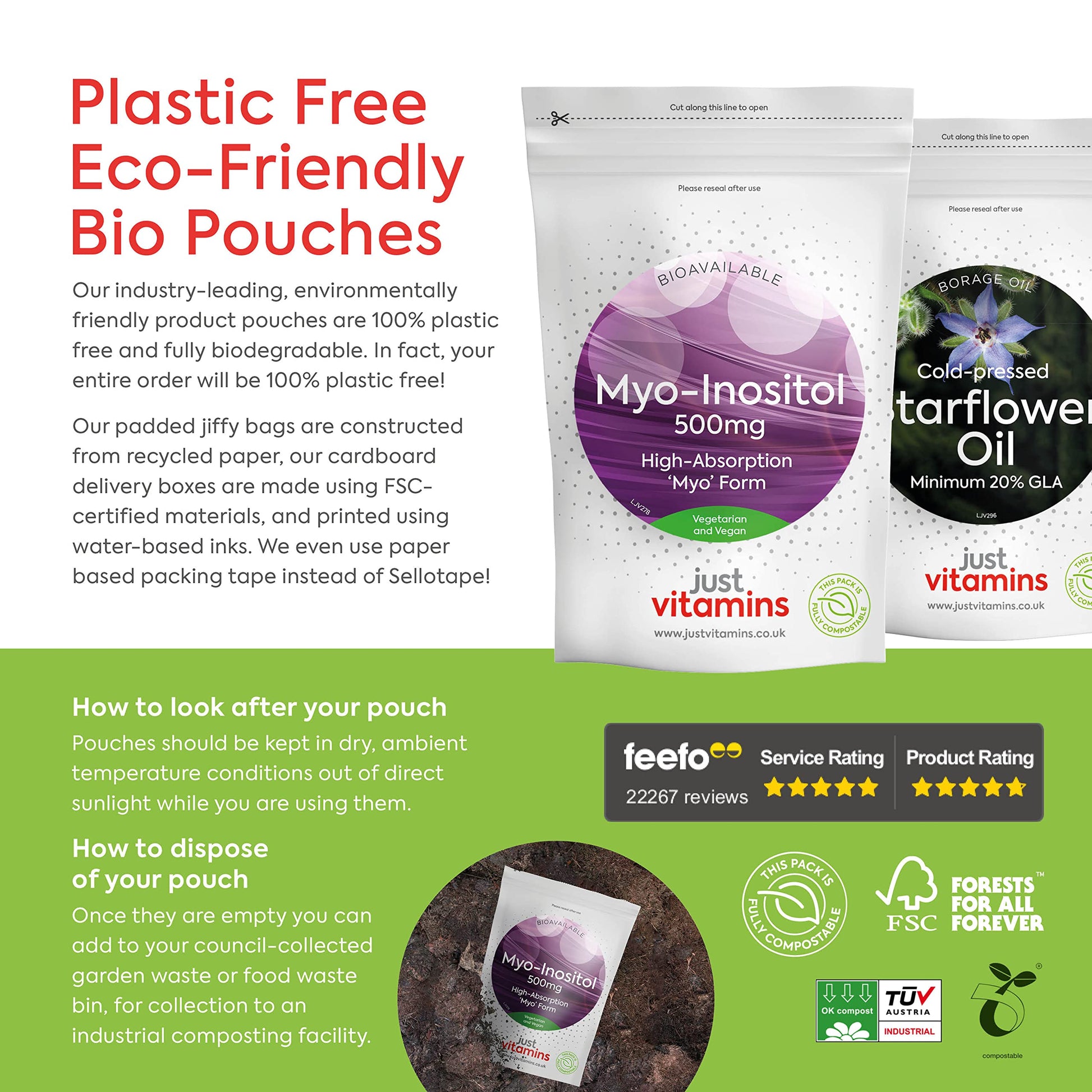 Myo-Inositol Capsules - 500mg x90 Capsules - Pure Premium Quality Myo Inositol Vitamin B8 - Female Hormone, Fertility, PCOS, Ovarian Function and Cycle Support Supplement by Just Vitamins. UK Made