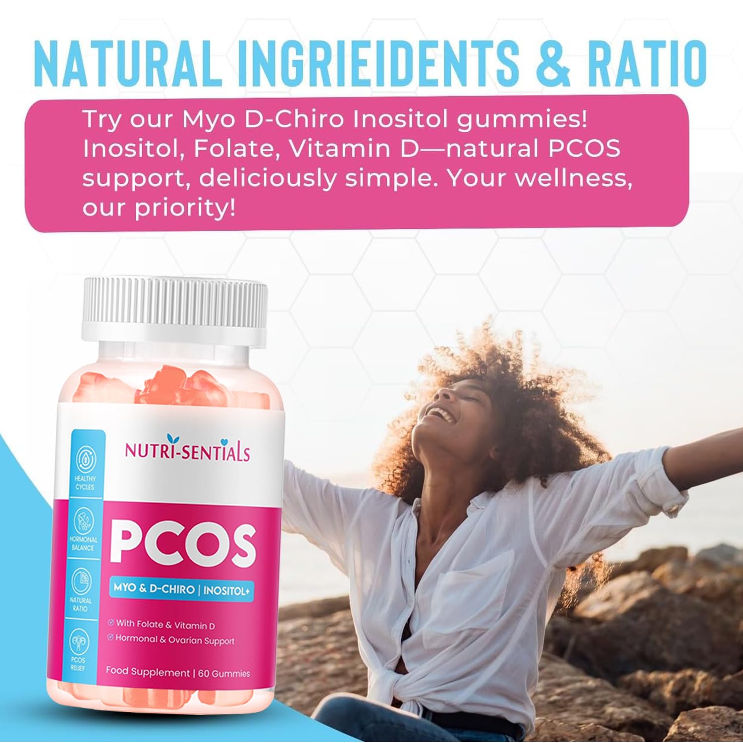 Myo-Inositol & D-Chiro Inositol Gummies- Myo & D-Chiro Inositol Supplement with Folate & Vitamin D- Natural Ratio Ovarian Support Women Hormone Balance Blend- PCOS Supplements for Women- 60 Gummies