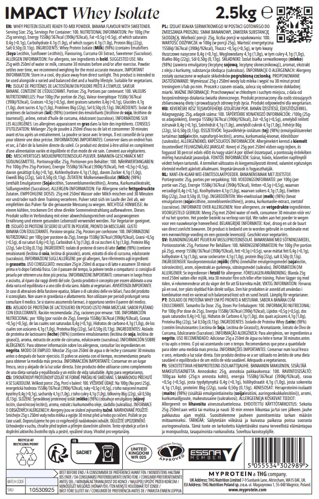 Myprotein MyProtein Impact Whey Isolate - Natural Banana - 500g - 20 Servings