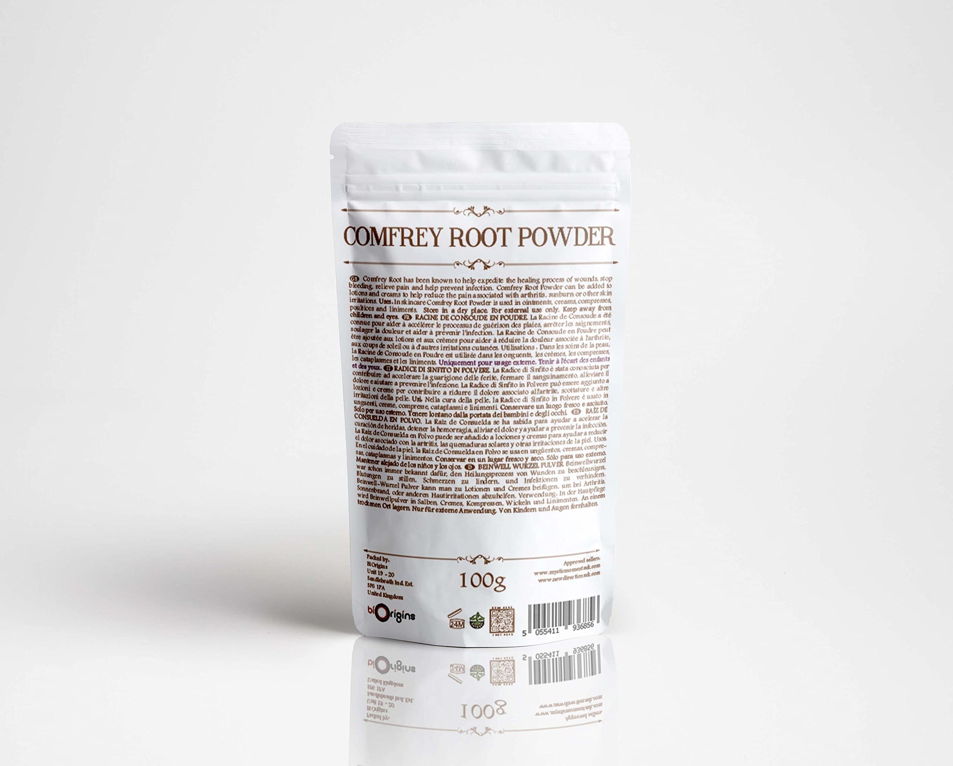 Comfrey Root Powder - 100gComfrey root has been known to help expedite the healing process of wounds, stop bleeding, relieve pain, and help prevent infection. Comfrey root powder can be added to lotions and creams to help reduce the pain associated with sunburn, or other skin irritations.