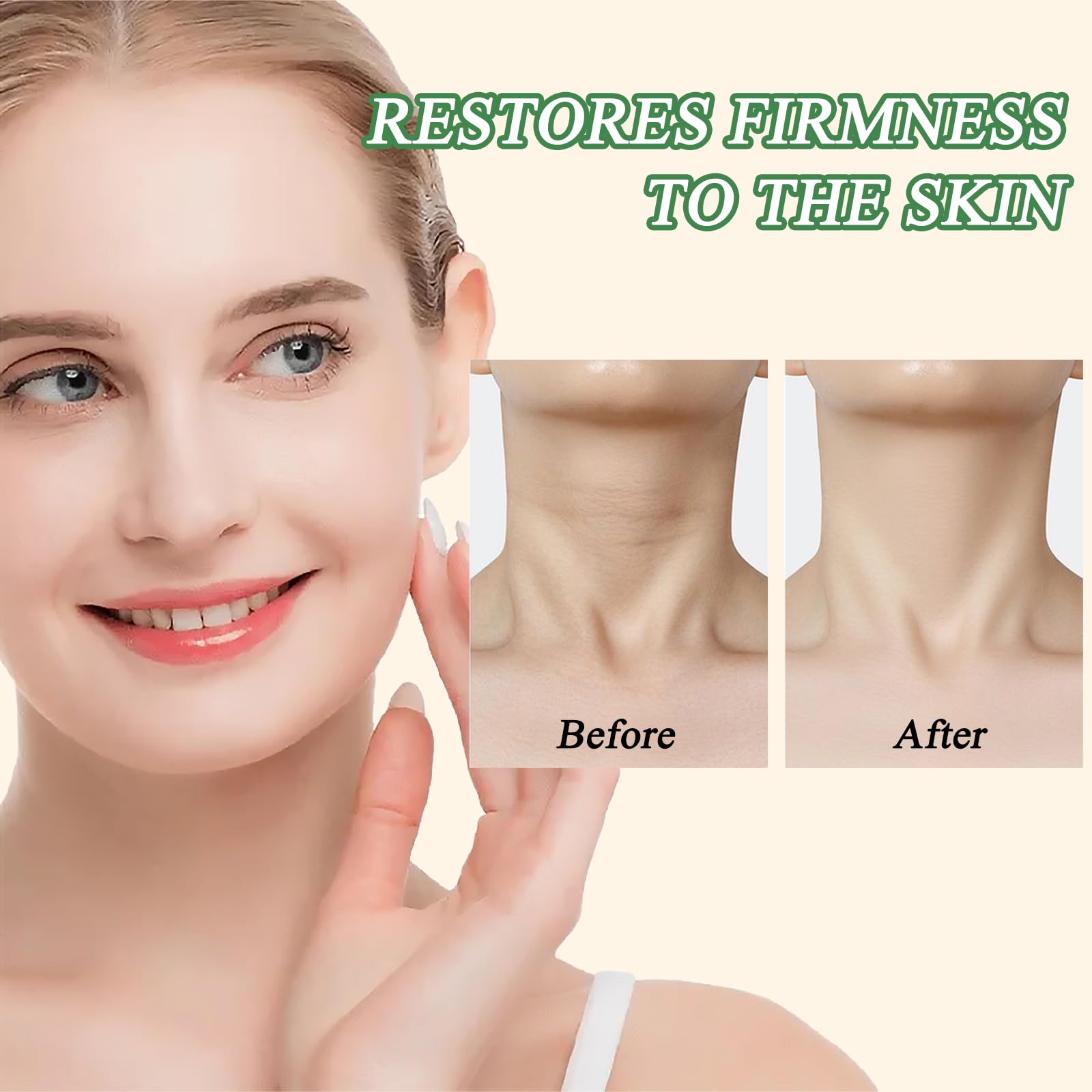 1. Apply a thin layer on the neck, legs, abdomen, arms or any desired area in the morning and evening to enhance the firmness and radiance of the skin.