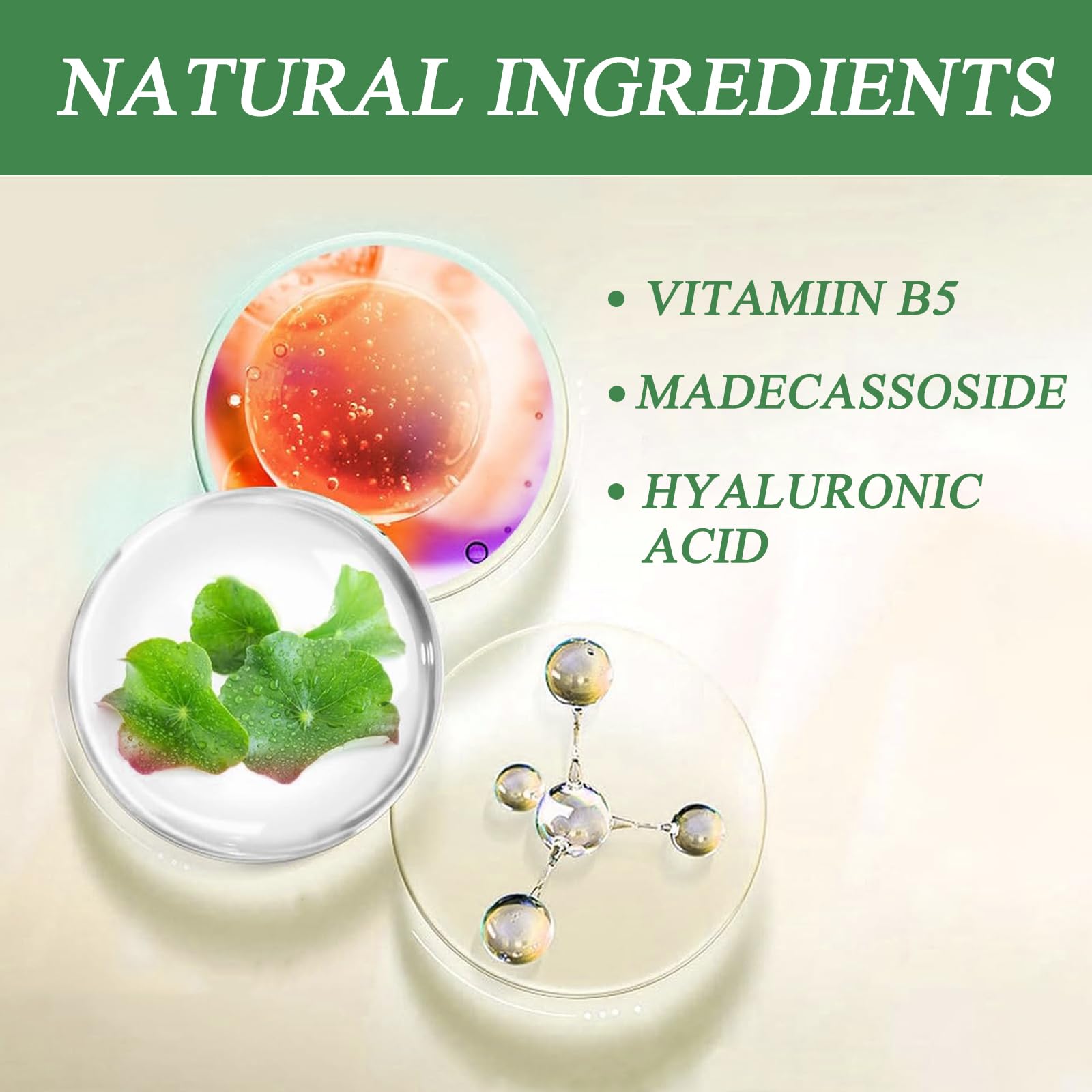 Vitamin b5, hyaluronic acid, acetyl hexapeptide-8, collagen peptide, niacinamide, madecassoside
