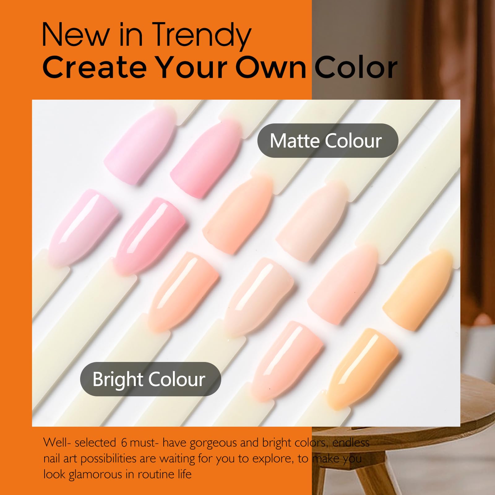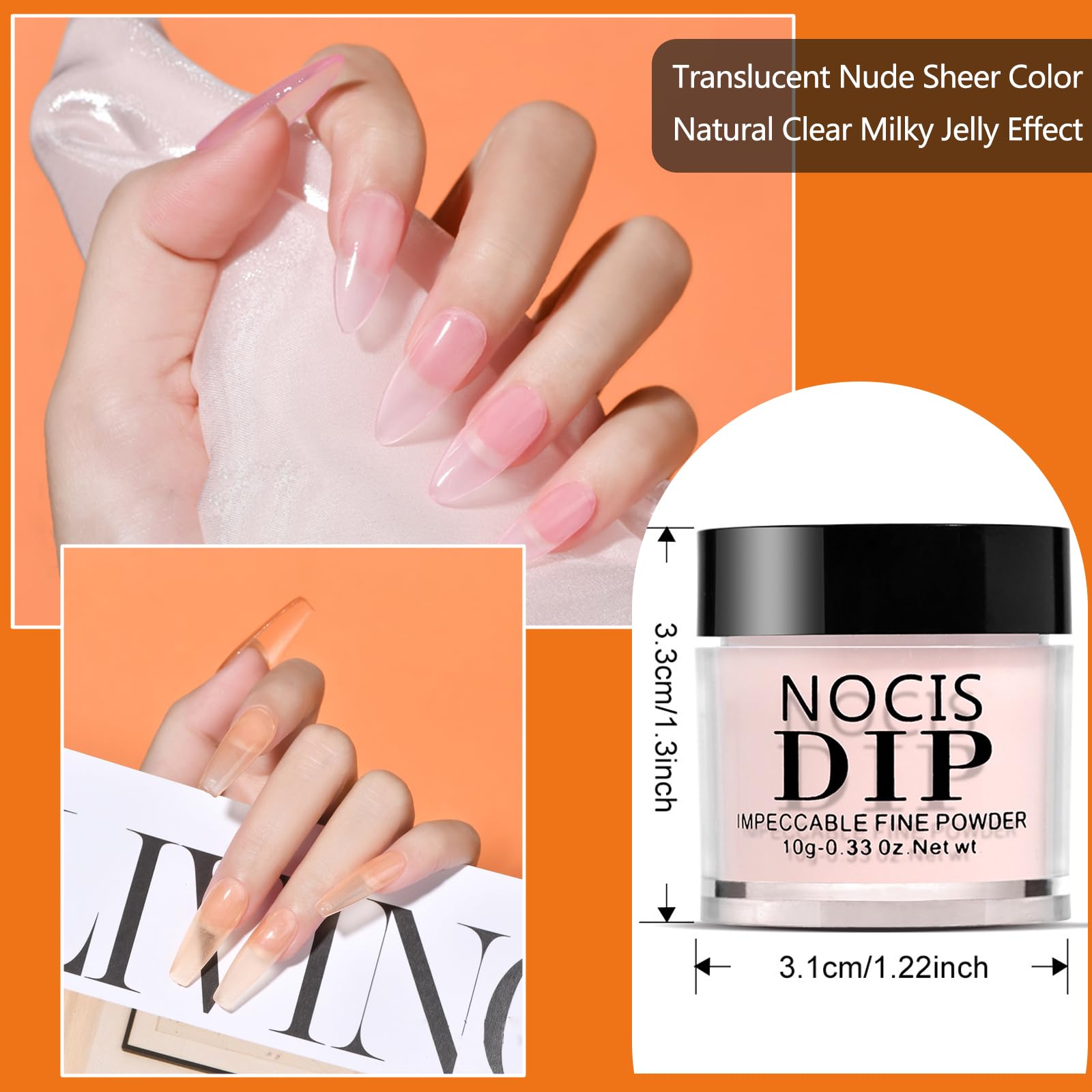 Nail Dipping Powder Set - 6 Translucent Nude Pink Color Dip Powder Nail Kit - Milky Jelly Effect Nail Powder No Need UV Lamp - DIY Nail Art French Manicure Kit for Starter