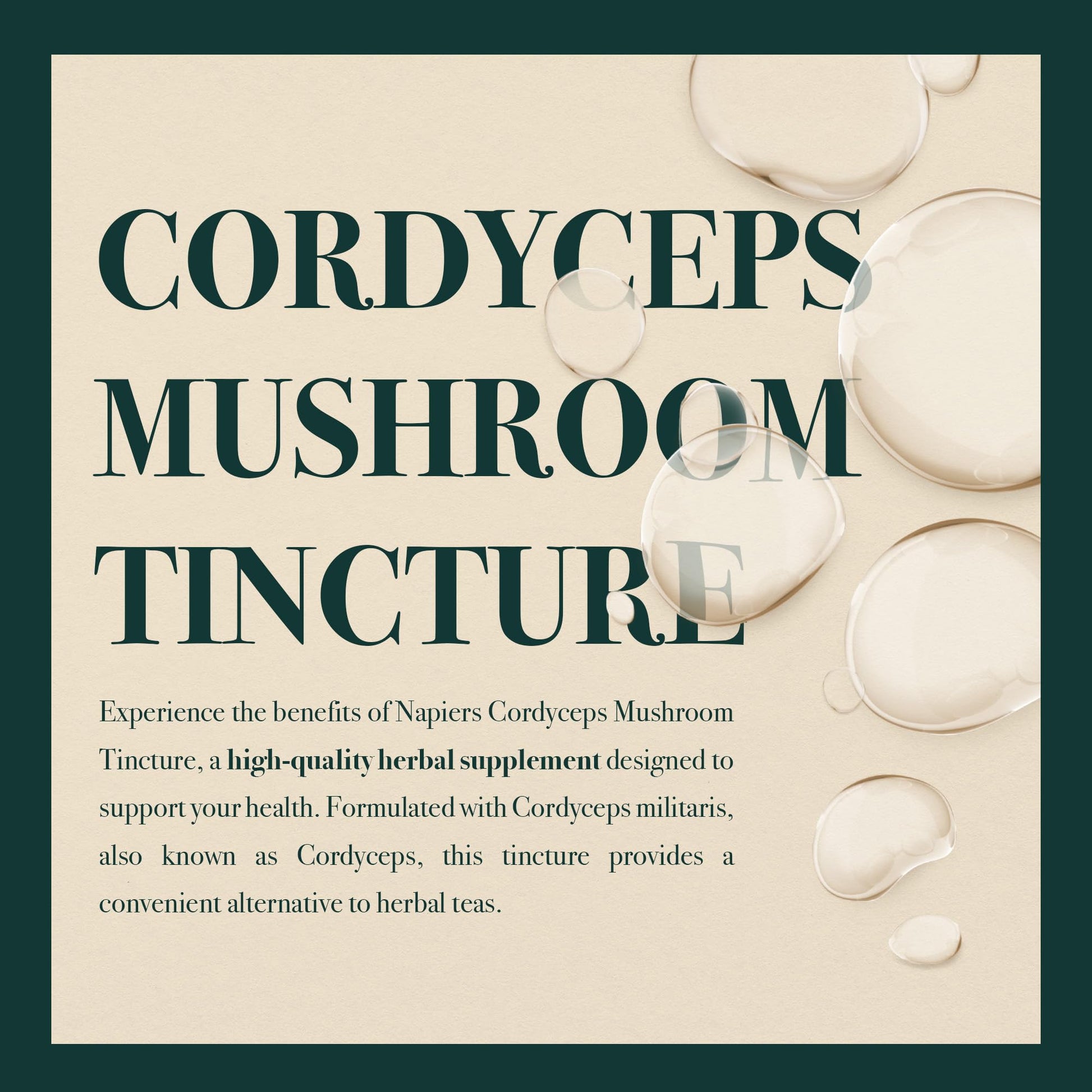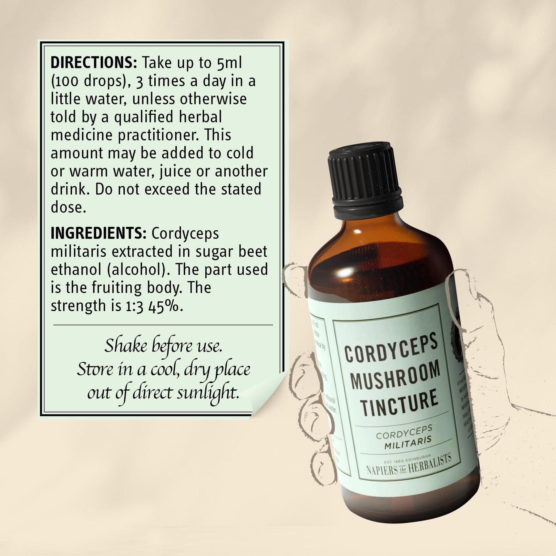 Experience the benefits of Napiers Cordyceps Mushroom Tincture, a high-quality herbal supplement designed to support your health. Formulated with Cordyceps militaris, also known as Cordyceps, this tincture provides a convenient alternative to herbal teas. Just add up to 5 ml (100 drops) to a little water, three times a day, and experience its numerous benefits. As a trusted brand, Napiers the Herbalists has been providing high-quality herbal remedies and supplements since 1860. Our commitment to excellence and the legacy of Duncan Napier, an eminent Victorian botanist and the most famous herbalist in Scotland, ensure that our herbal tinctures, natural therapeutic skincare, botanical beauty, and herbal food supplements are second to none. Remember to consult with a medical herbalist or healthcare practitioner if you're pregnant, breastfeeding, young, unwell, or on medication. This product is not intended for use by a person under the age of 18. Napiers Cordyceps Mushroom Tincture, a natural choice for herbal supplementation.More Info