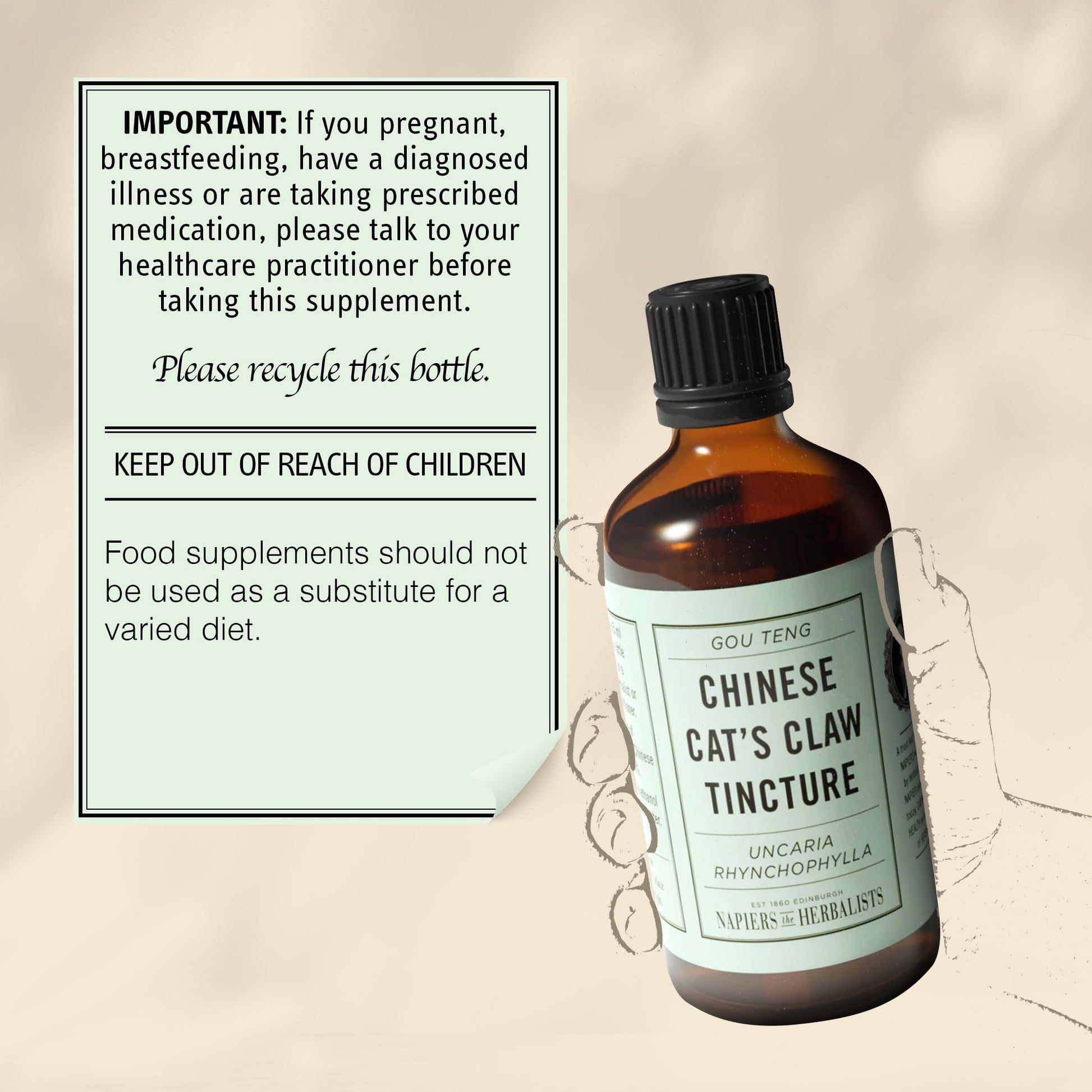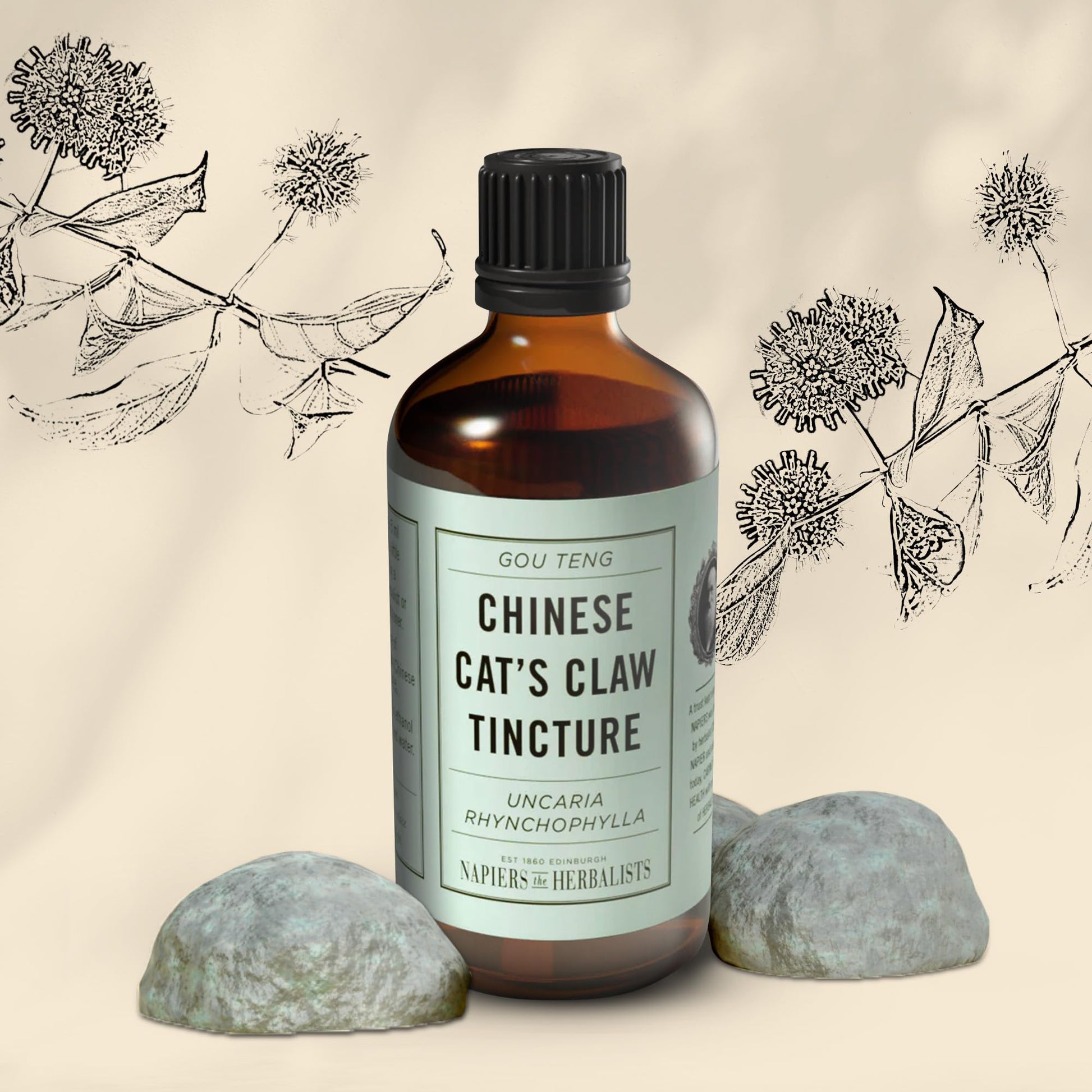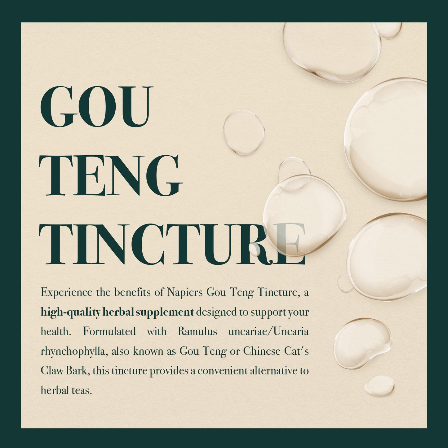 Experience the benefits of Napiers Gou Teng Tincture, a high-quality herbal supplement designed to support your health. Formulated with Ramulus uncariae/Uncaria rhynchophylla, also known as Gou Teng or Chinese Cat's Claw Bark, this tincture provides a convenient alternative to herbal teas. Just add up to 5 ml (100 drops) to a little water, three times a day, and experience its numerous benefits. As a trusted brand, Napiers the Herbalists has been providing high-quality herbal remedies and supplements since 1860. Our commitment to excellence and our legacy of Duncan Napier, an eminent Victorian botanist and the most famous herbalist in Scotland, ensures that our herbal tinctures, natural therapeutic skincare, botanical beauty, and herbal food supplements are second to none. Remember to consult with a medical herbalist or healthcare practitioner if you're pregnant, breastfeeding, young, unwell, or on medication. This product is not intended for use by a person under the age of 18. Napiers Gou Teng Tincture, a natural choice for herbal supplementation.More Info