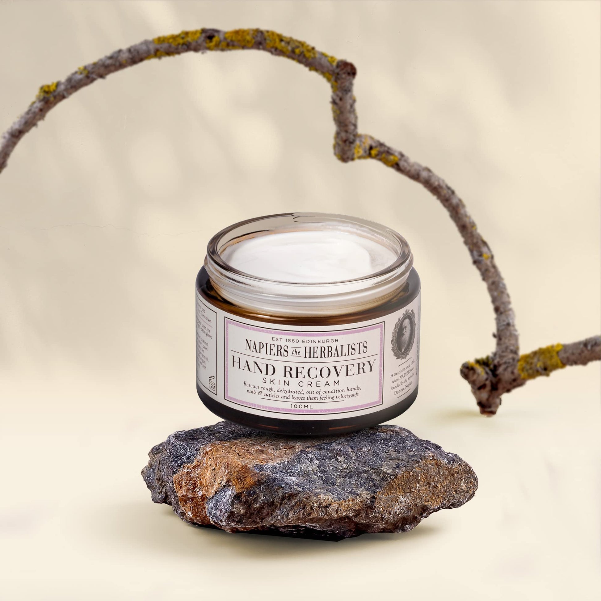 Napiers Hand Recovery Cream for very dry hands - is a nourishing and moisturising formula that will transform even the roughest, most damaged skin. Our intensive hand repair cream is specifically designed to provide deep hydration to extremely dry hands while softening and smoothing the skin for a velvety texture. The non-greasy formula is quickly absorbed so you can use it throughout the day without any residue. Enriched with natural plant oils and kinds of butter, Napiers hand cream provides a range of benefits beyond just hydration. It helps to soothe and repair rough, chapped skin and condition and strengthen nails and cuticles. Our formula is also paraben-free, making it an excellent choice for those with sensitive skin or concerns about harsh chemicals. Choose our hand cream for very dry hands for a luxurious and hydrating experience that will leave your hands feeling soft, smooth, and nourished. Trust in the heritage of Napiers the Herbalists, a brand with over 150 years of experience in crafting natural remedies and skincare products.More Info