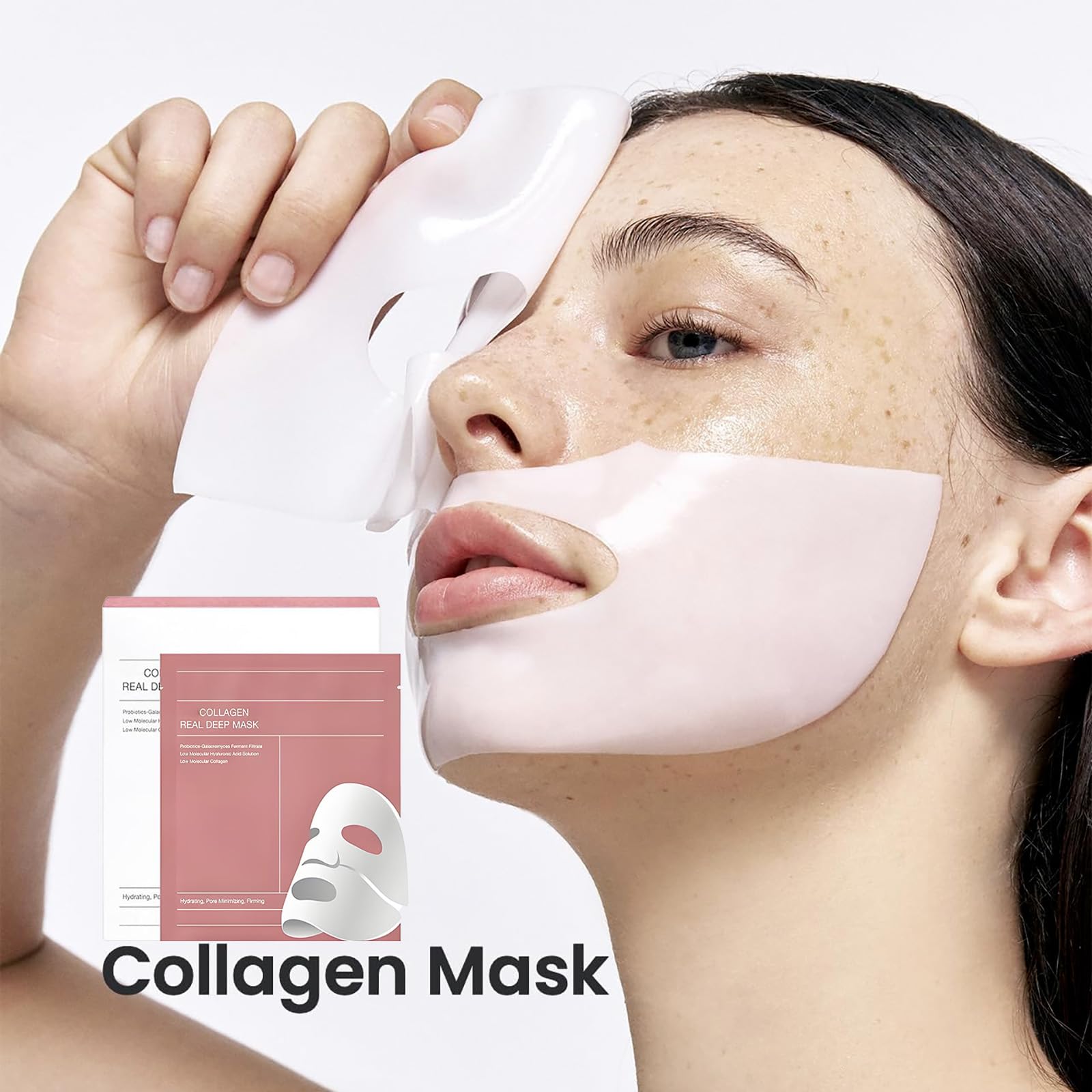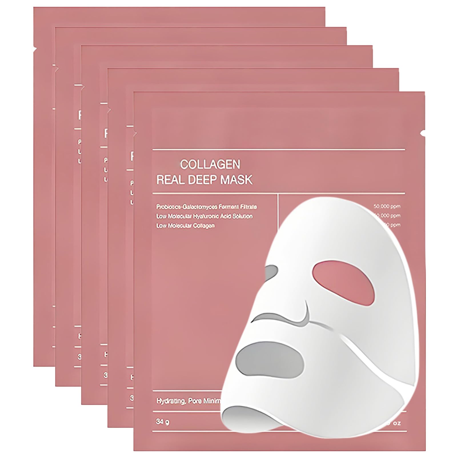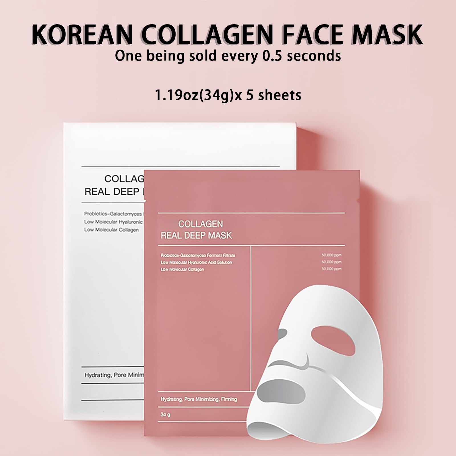 NatrLuxe Korean Collagen Face Mask - Hydrating Overnight Sheet Masks For Face Skincare - 5pcs Pack