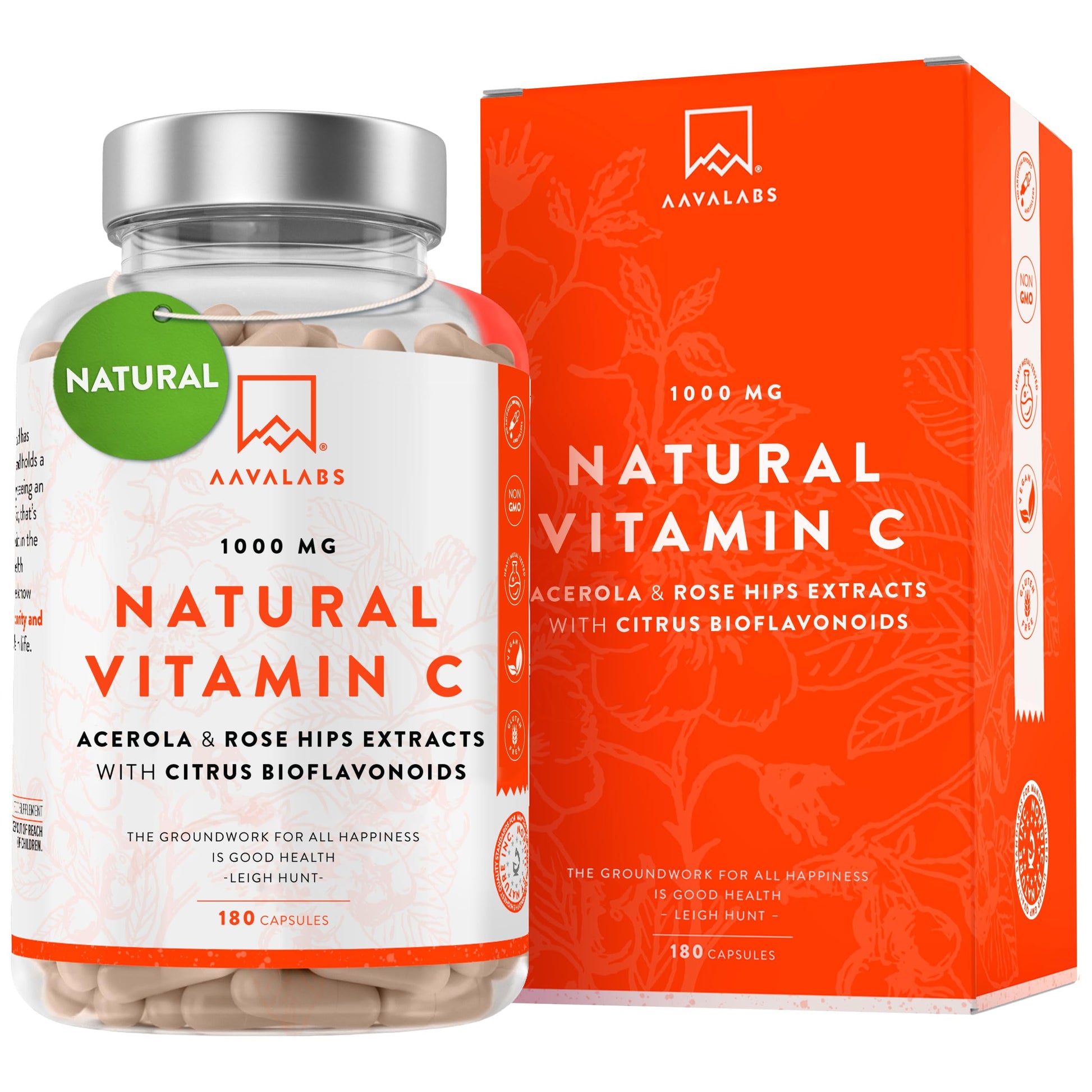 Natural High Strength Vitamin C 1000mg -180 Vitamin C tablets - 100% Vegan Acerola Fruit Extract - with Citrus Bioflavonoids and Rosehip - Vitamin C Capsules -Supports Immune Function- 3 Months Supply