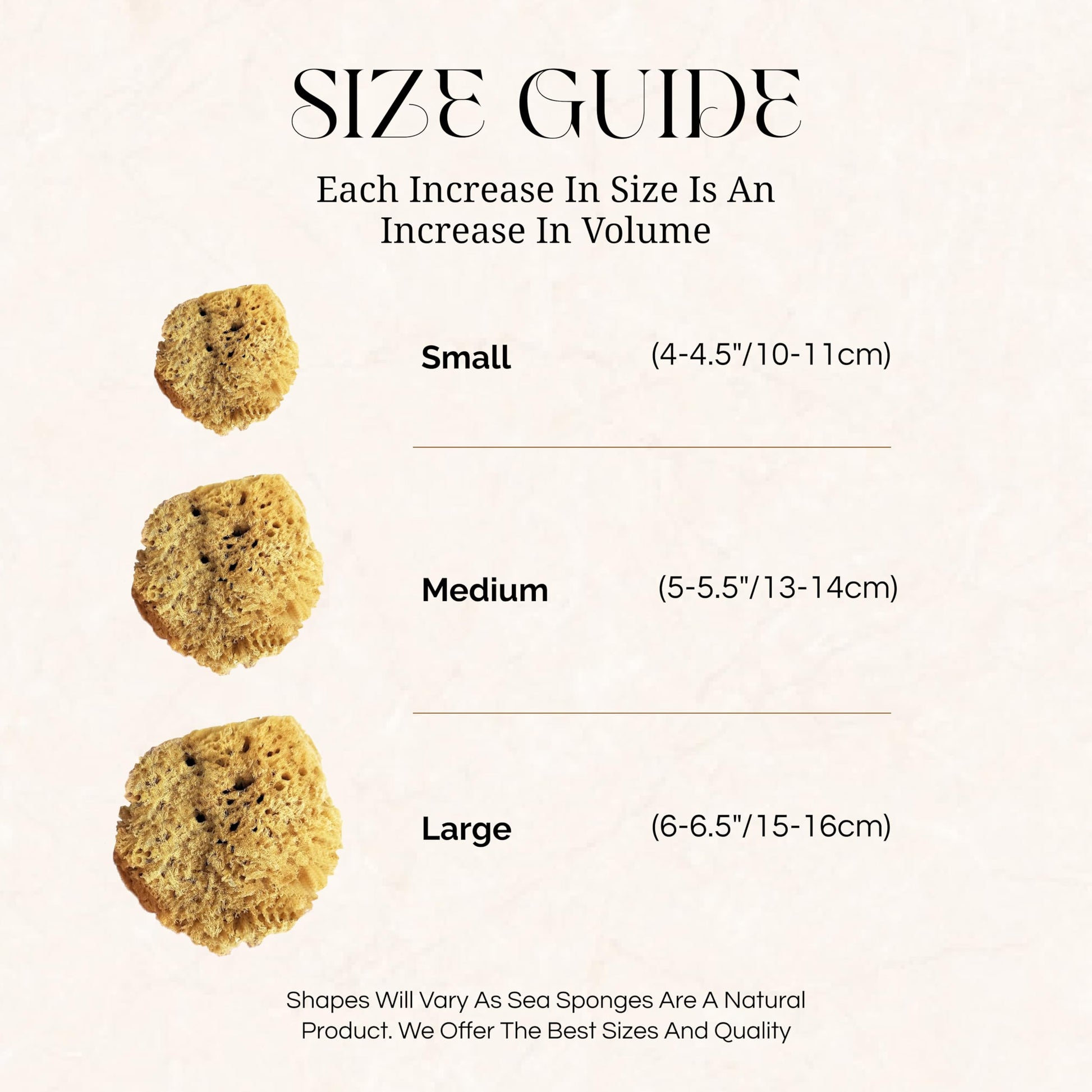 Your skin will feel softer than ever after your natural sponge has absorbed unwanted matter from your skin. Available in sizes small (4-4.5""/10-11cm), medium (5-5.5""/13-14cm), x-large (6-6.5""/15-16cm).