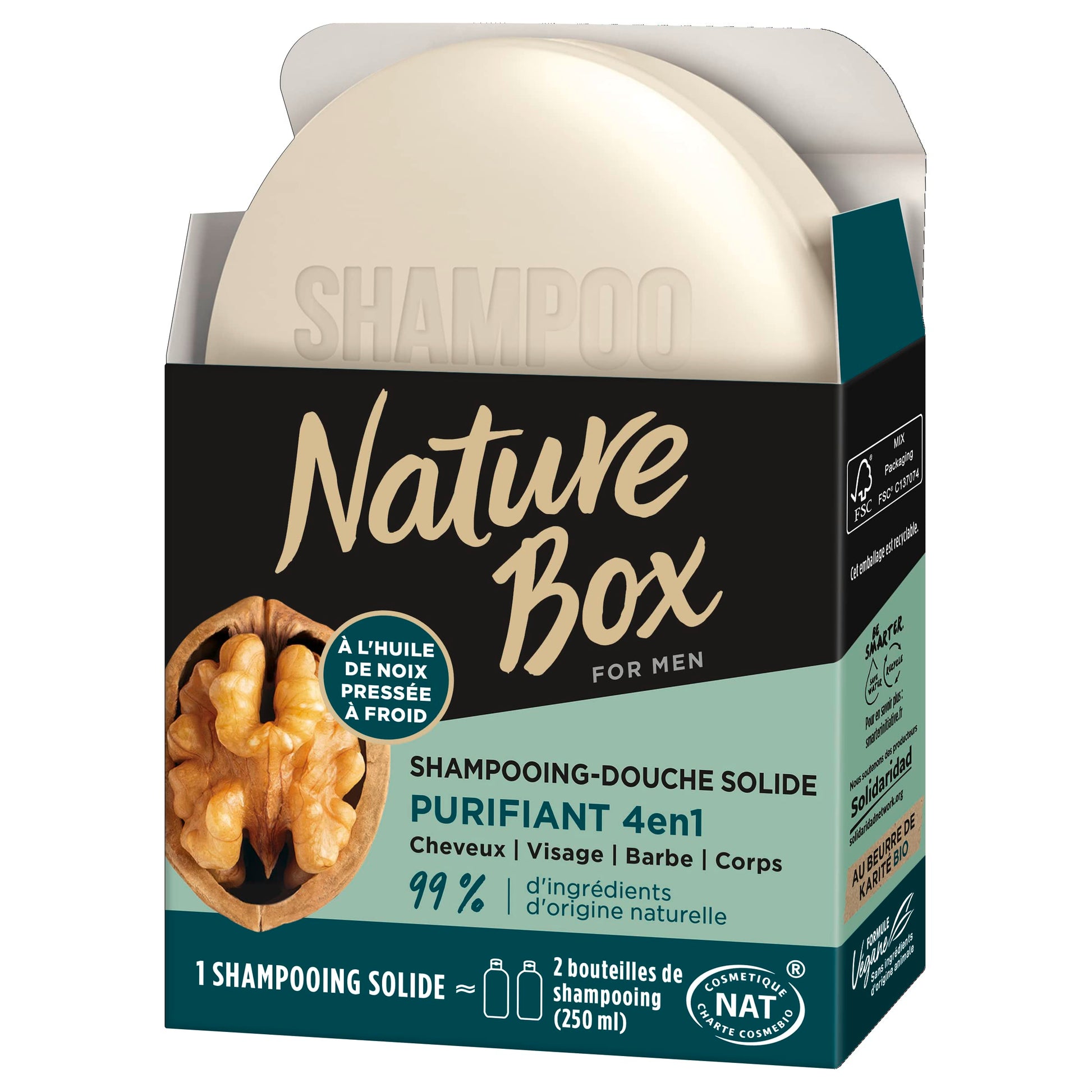 Nature Box - 4 in 1 Solid Purifying Shampoo - With Cold-Pressed Nut Oil - Hair/Scalp/Leather/Beard / Body - 99% Natural Ingredients - Soap of 85 g