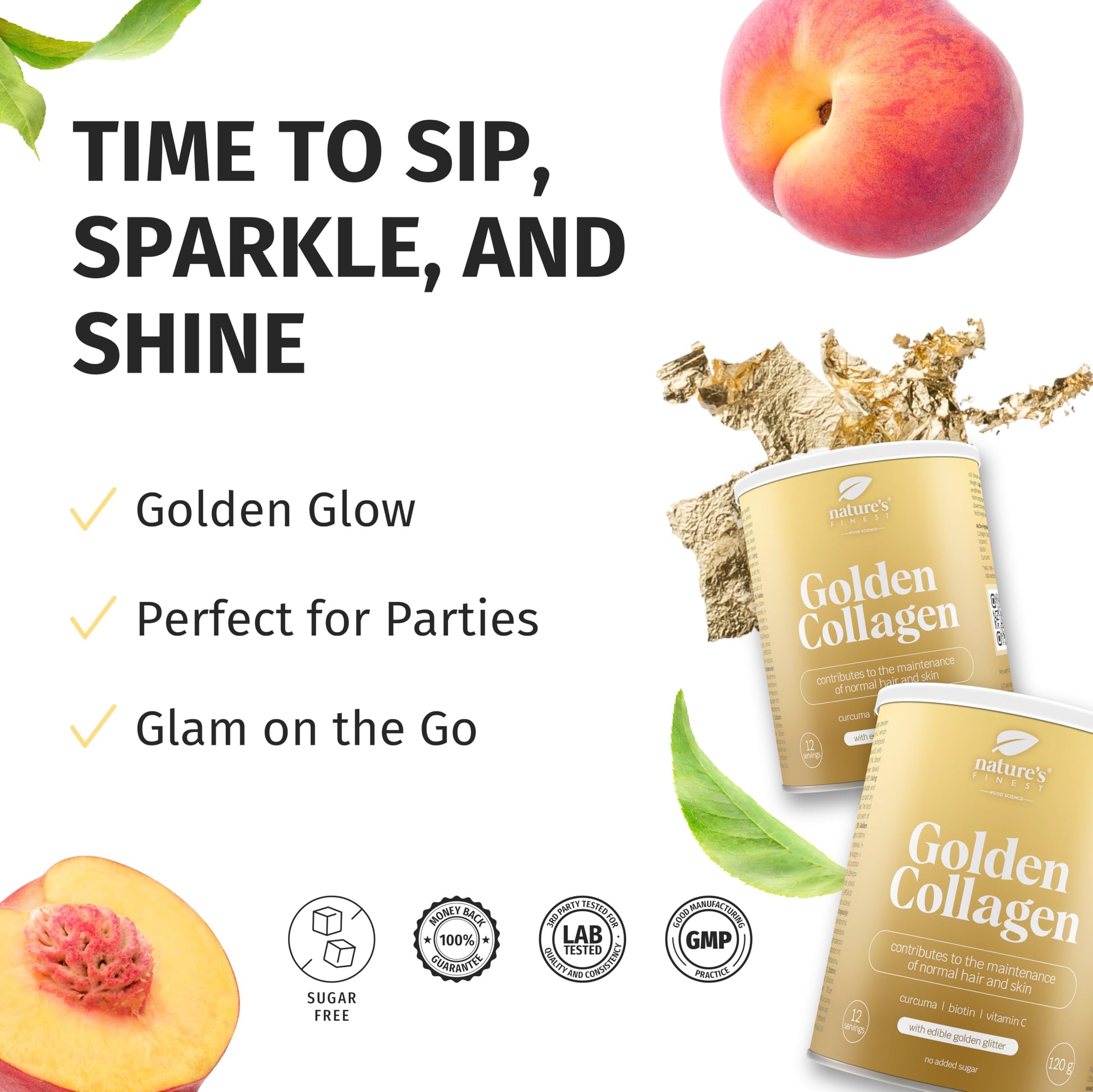 - Golden Collagen for Ultimate Glow: This magical drink is packed with 2,500mg of Premium Hydrolysed Collagen, specially formulated to give you youthful, radiant skin, strong nails, and luscious hair. Combat the signs of aging and let your natural beauty shine through – all with a sprinkle of golden glitter!