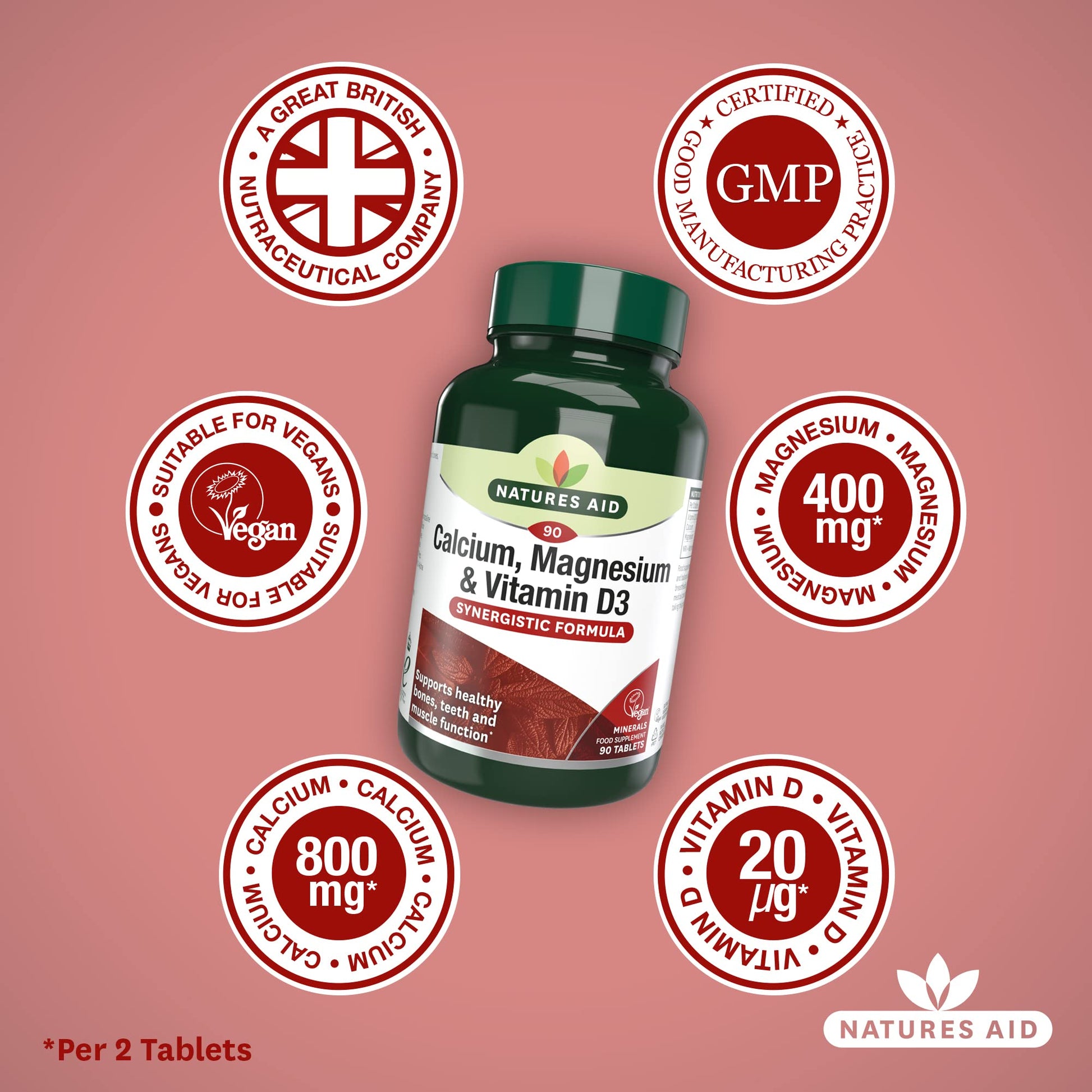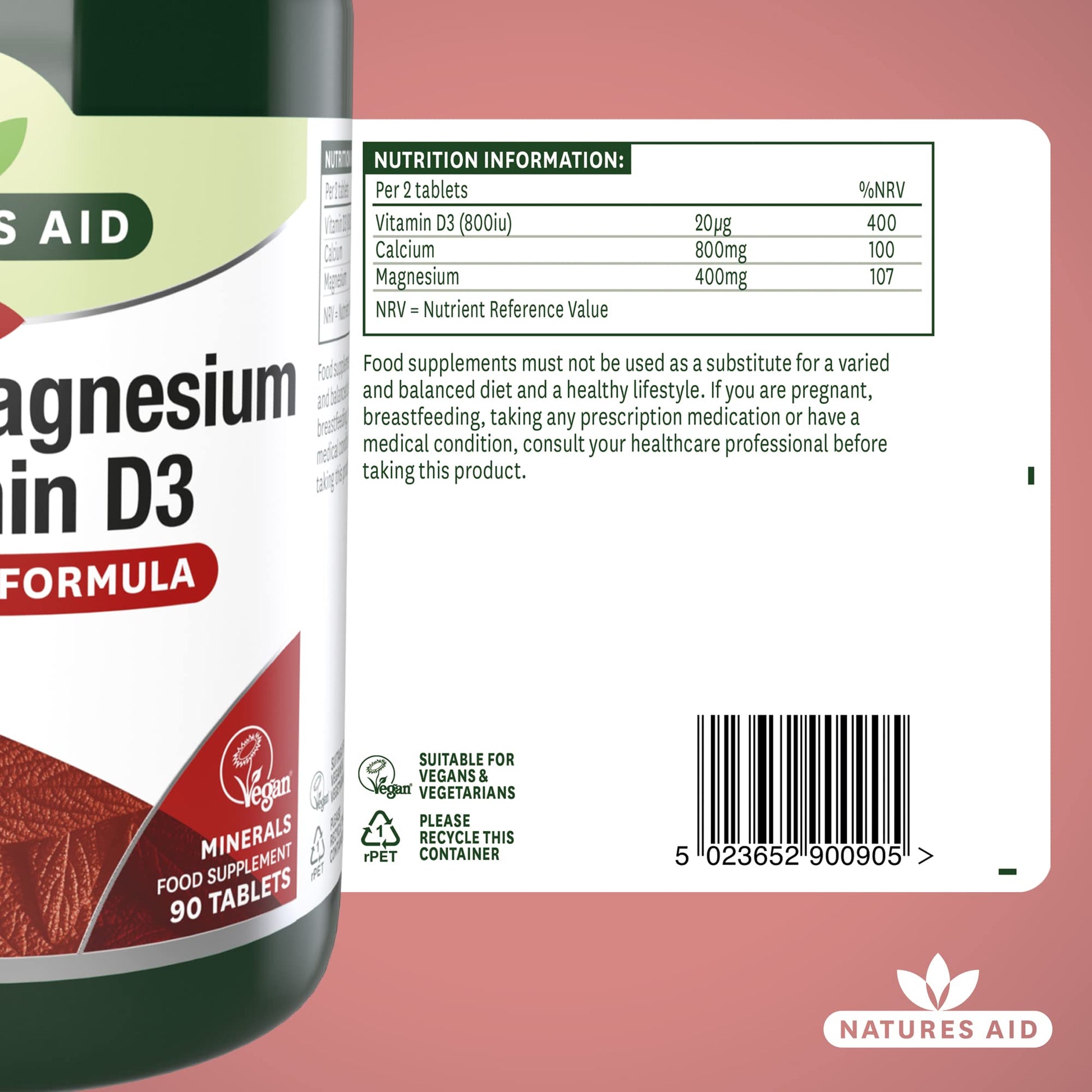 Natures Aid Calcium Magnesium and D3, Helps Maintain Normal Bones, Teeth and Muscle Function, Vegan, 90 Tablets