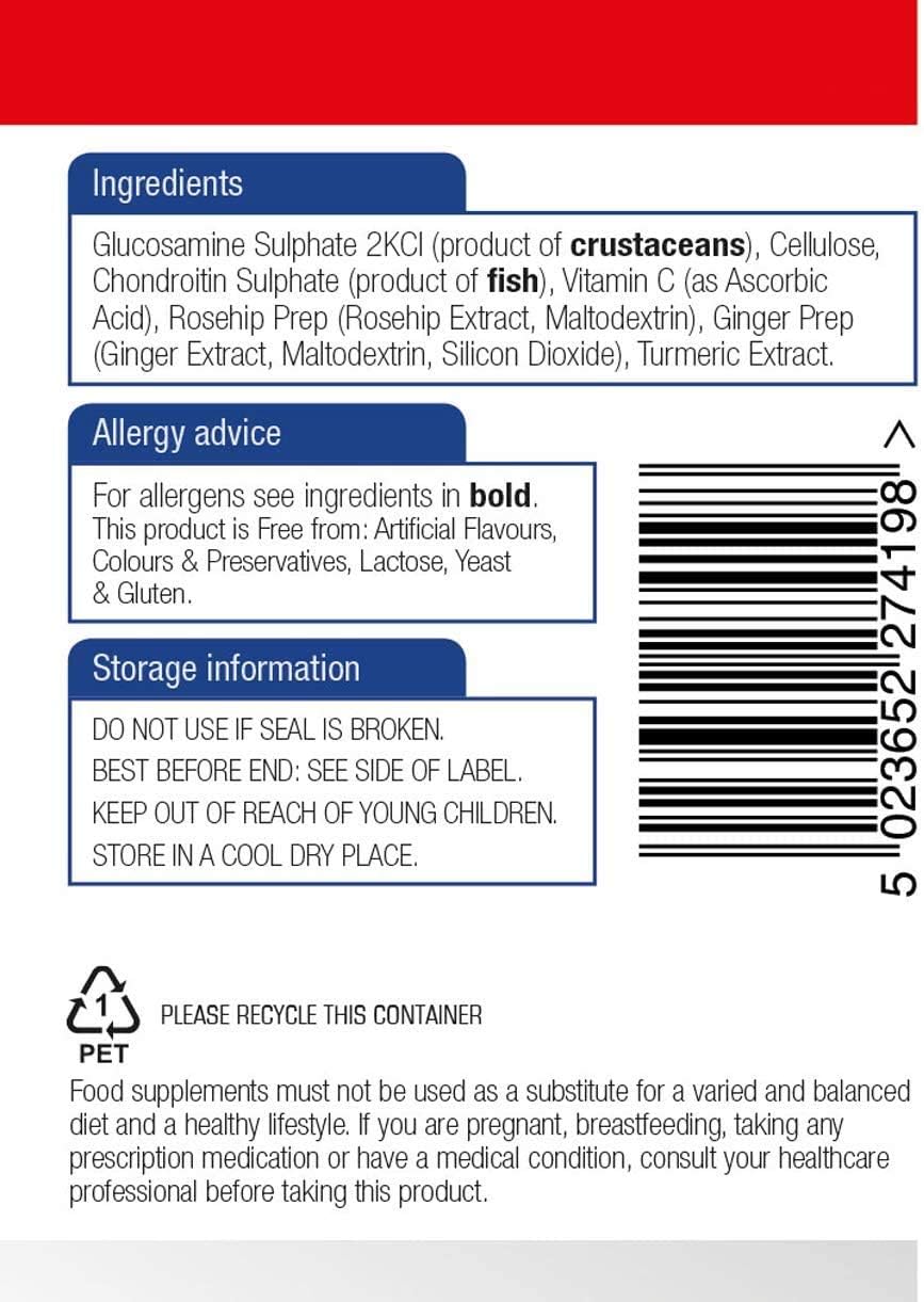 - Provides 500 mg Glucosamine and 100 mg Chondroitin, combined with popular ingredients Rosehip, Ginger and Turmeric