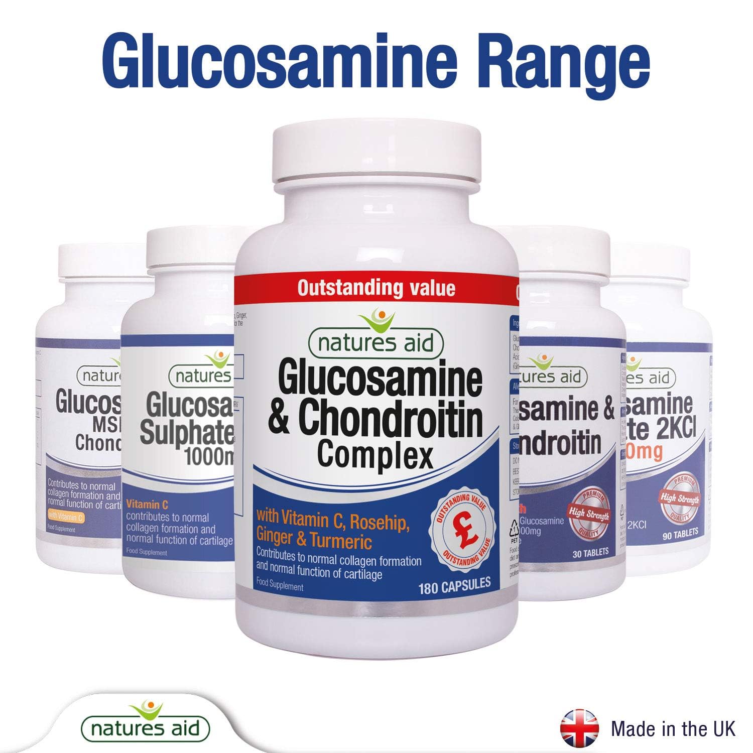 Natures Aid Glucosamine and Chondroitin Complex, with Vitamin C, Rosehip, Ginger and Turmeric, 180 Capsules,package may vary