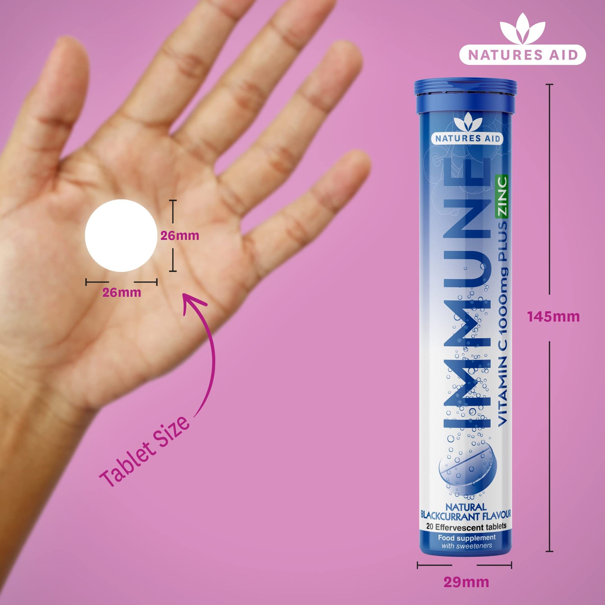 natures aid Immune Effervescent with Zinc & Vitamin C, Natural Blackcurrant Flavour, 20 Tablets, Pack of 1