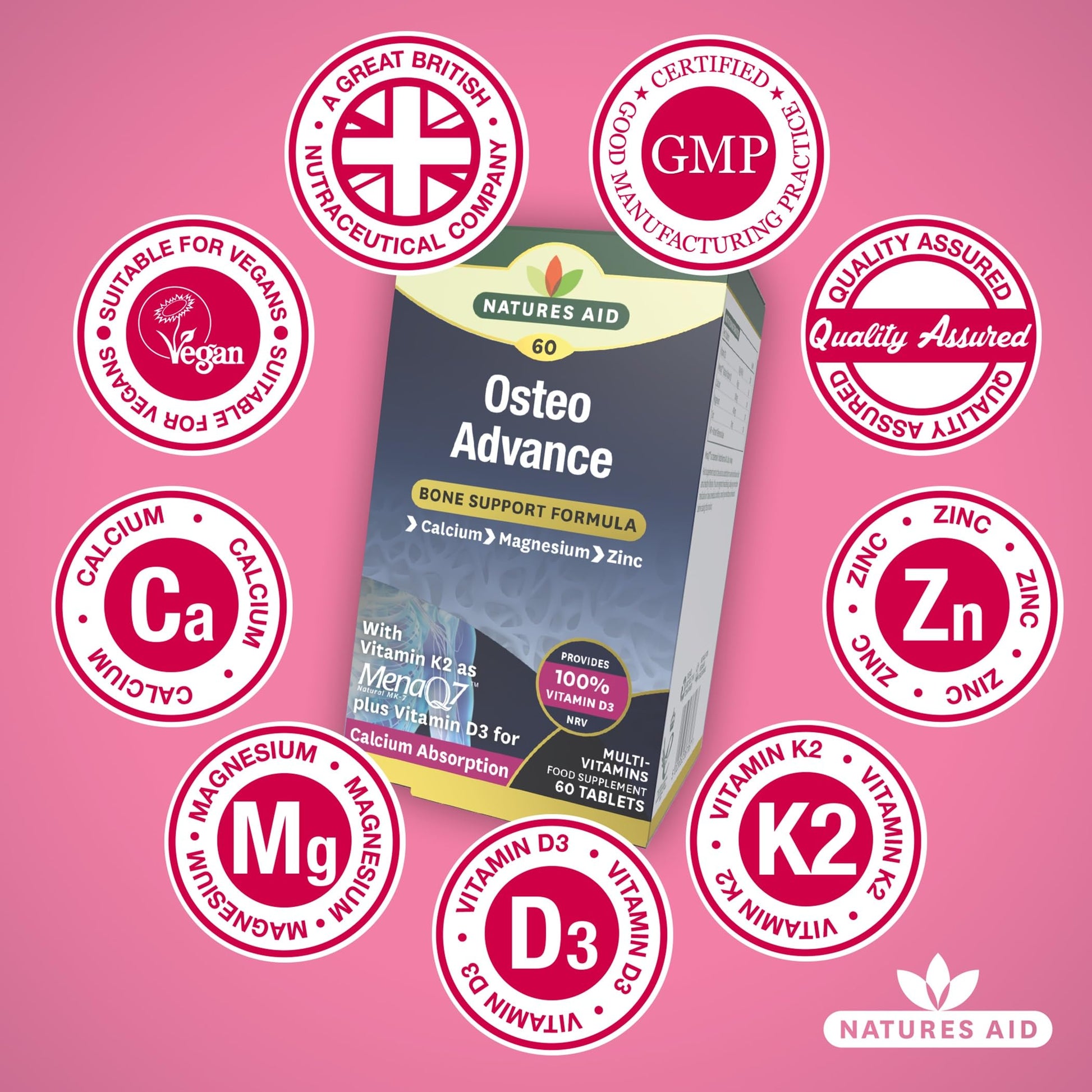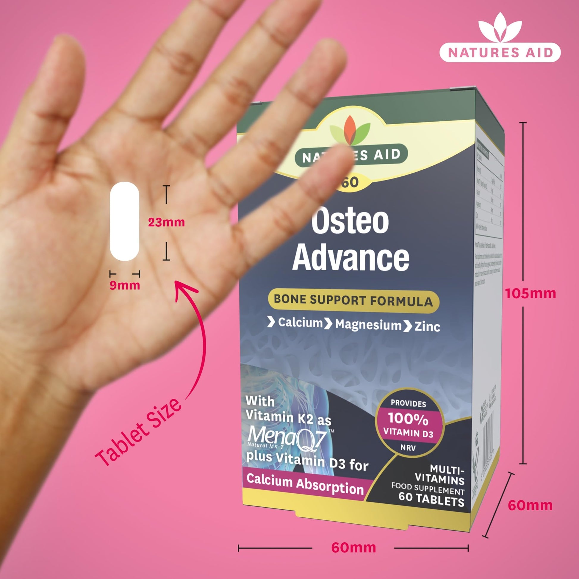 Natures Aid Osteo Advance with MenaQ7® – High Strength Bone & Joint Support Supplement – Calcium, Magnesium, Vitamin D3 & K2 – Vegan, Gluten Free, Non-GMO – 60 Tablets