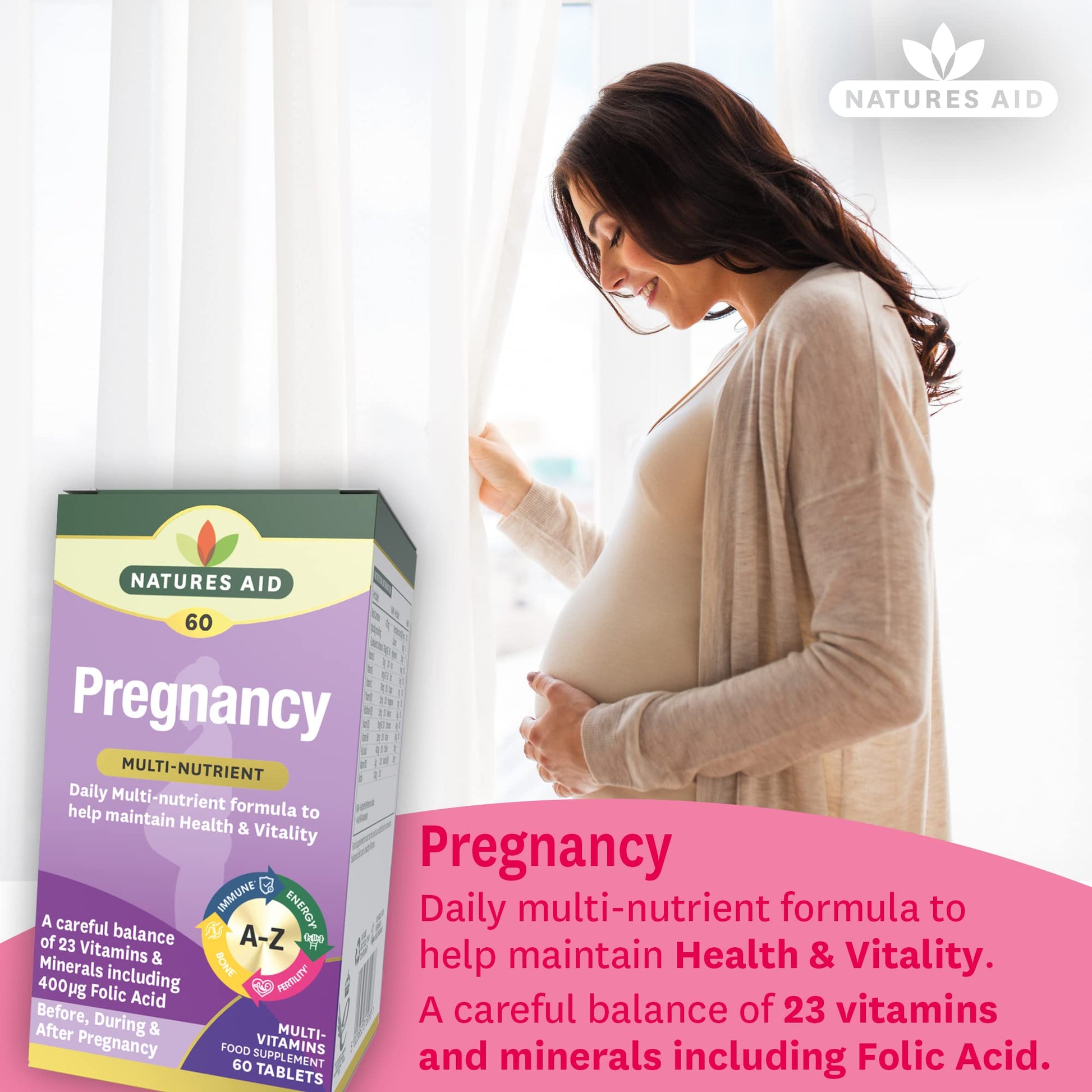 Natures Aid Pregnancy Multi-Vitamins and Minerals Tablets (23 Essential Vitamins and Minerals, 60 Tablets, Before, During and After Pregnancy, Vegan Society Approved, Made in the UK)