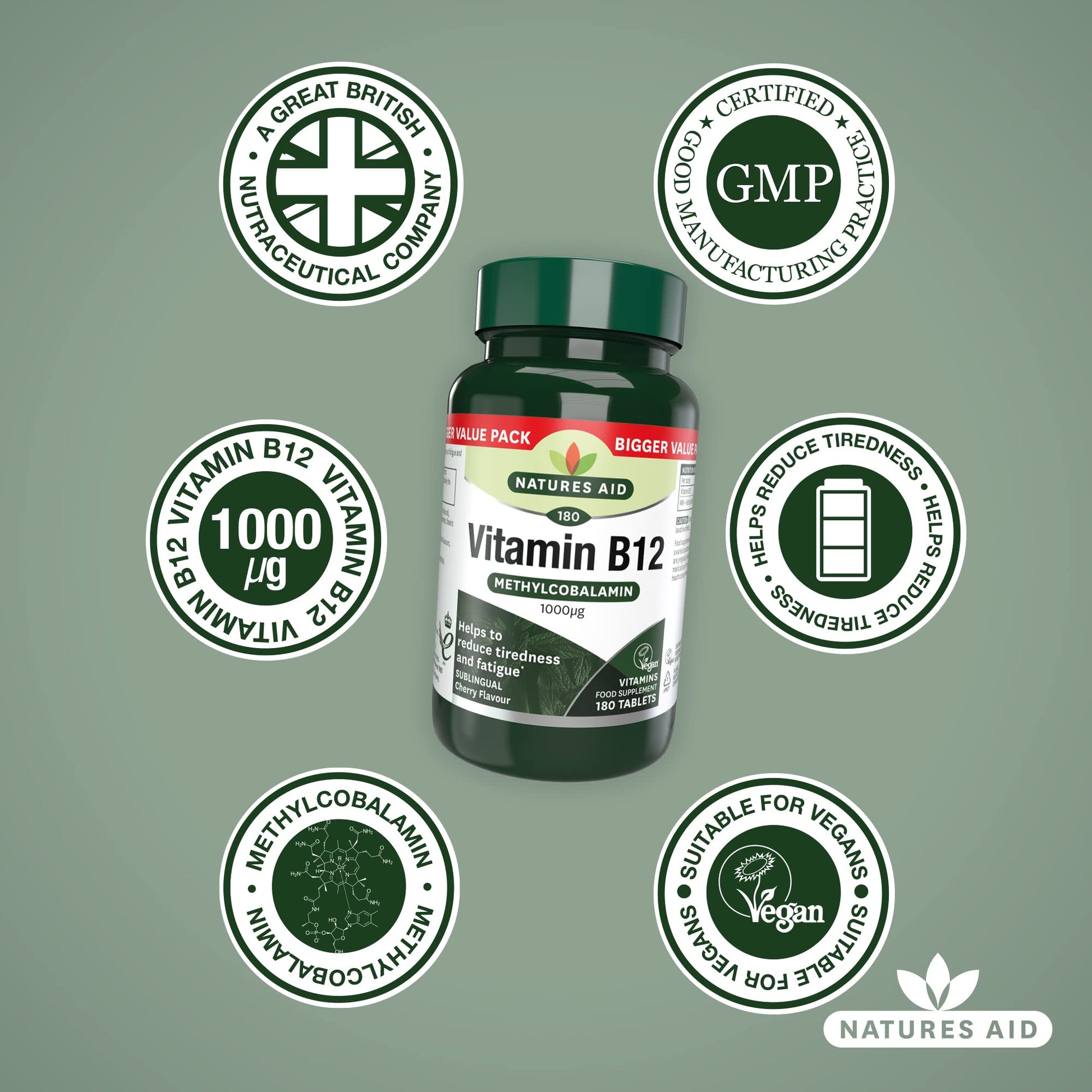 - Natures Aid Vitamin B12 tablets, providing 1000μg B12 as Methylcobalamin