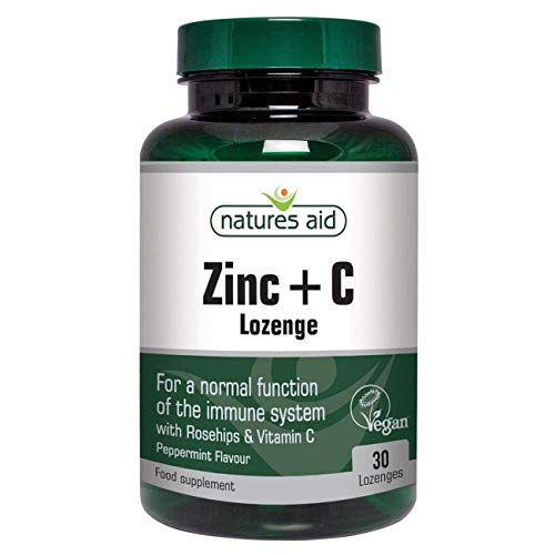 Each Natures Aid peppermint-flavour Zinc lozenge provides 15µg Zinc, with 240mg Vitamin C and 25mg Rosehip extract, for the normal functioning of the immune system.