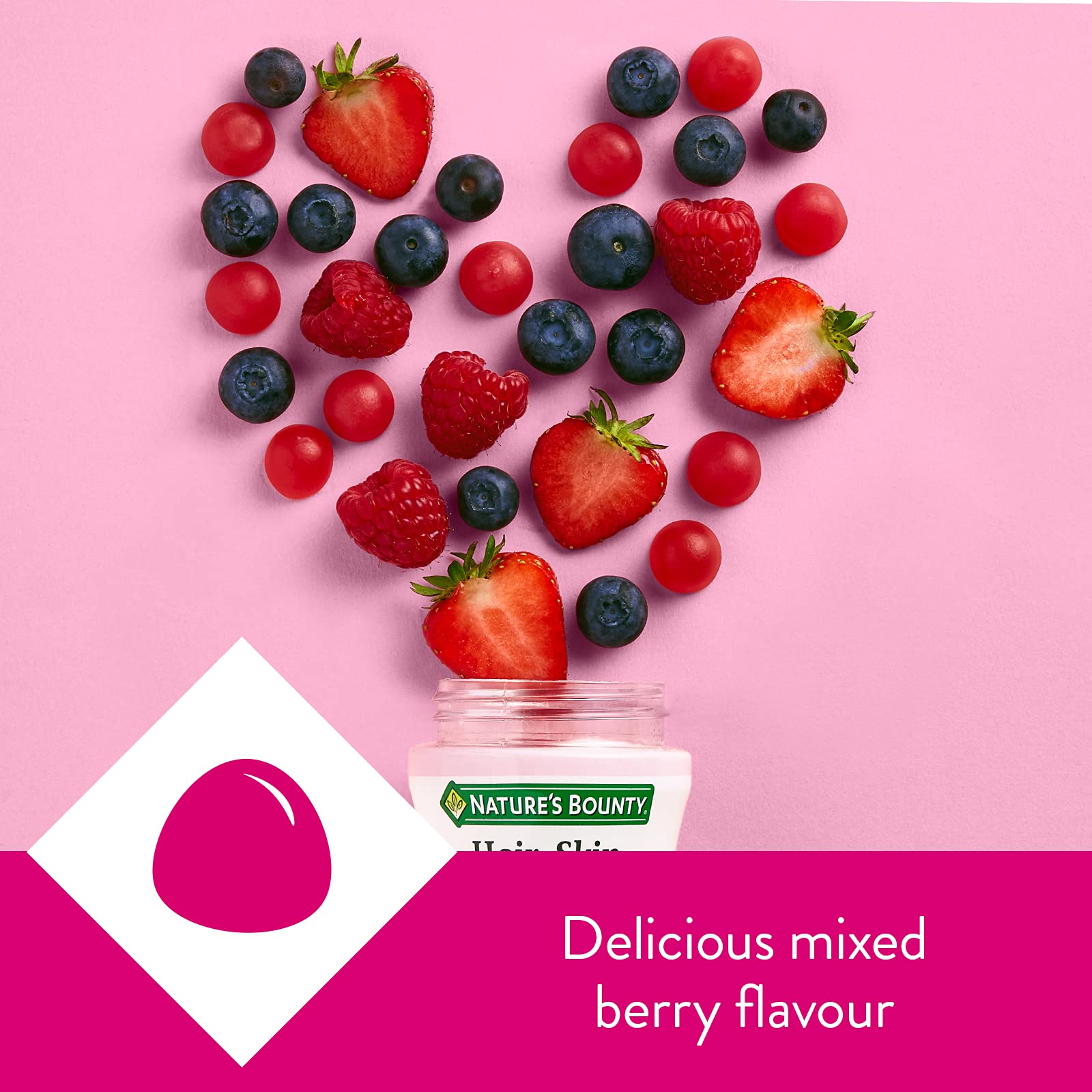 - ✓ NATURAL PECTIN BASED MIXED BERRY GUMMIES - Nature's Bounty Hair, Skin and Nails Gummies with Collagen are the mixed berry flavoured way to help you and your beauty routine glow